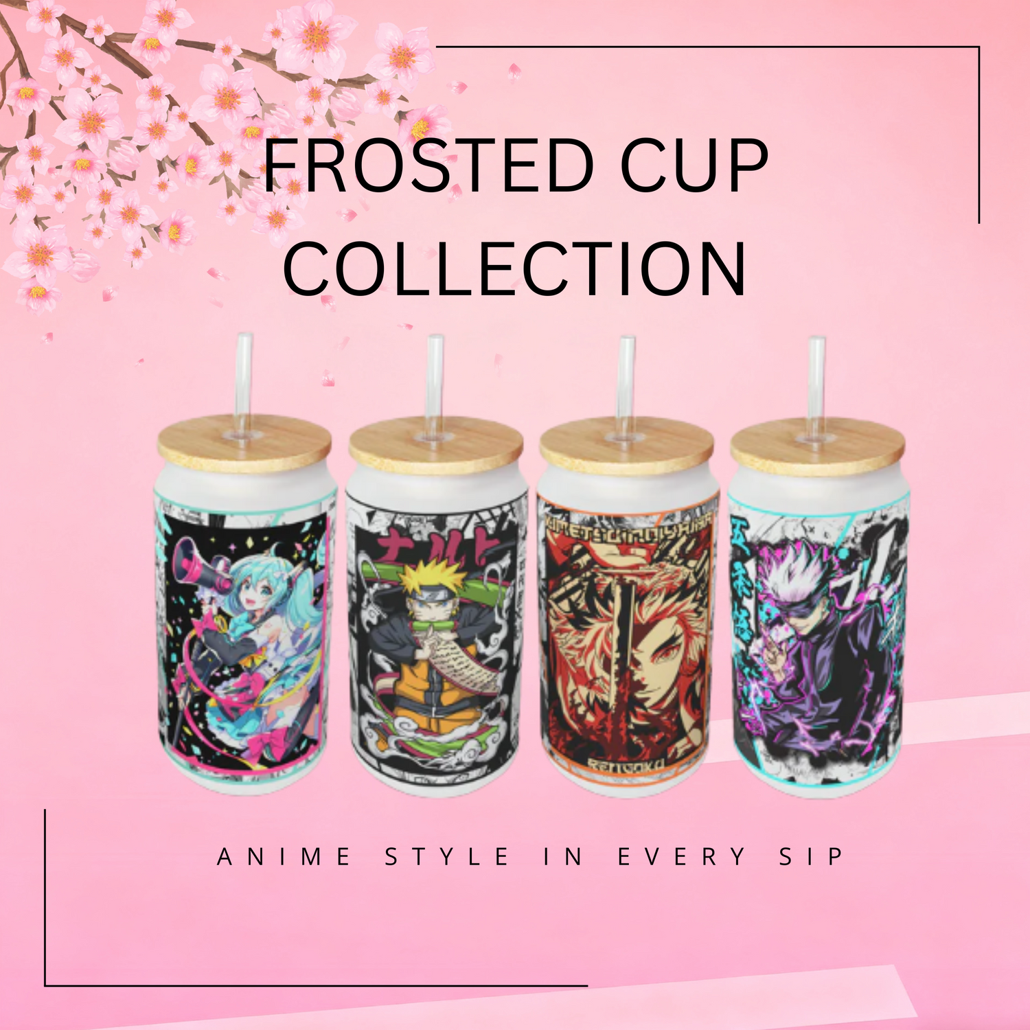 Shop our exclusive line of hand made anime-themed sublimation glass cups, designed...