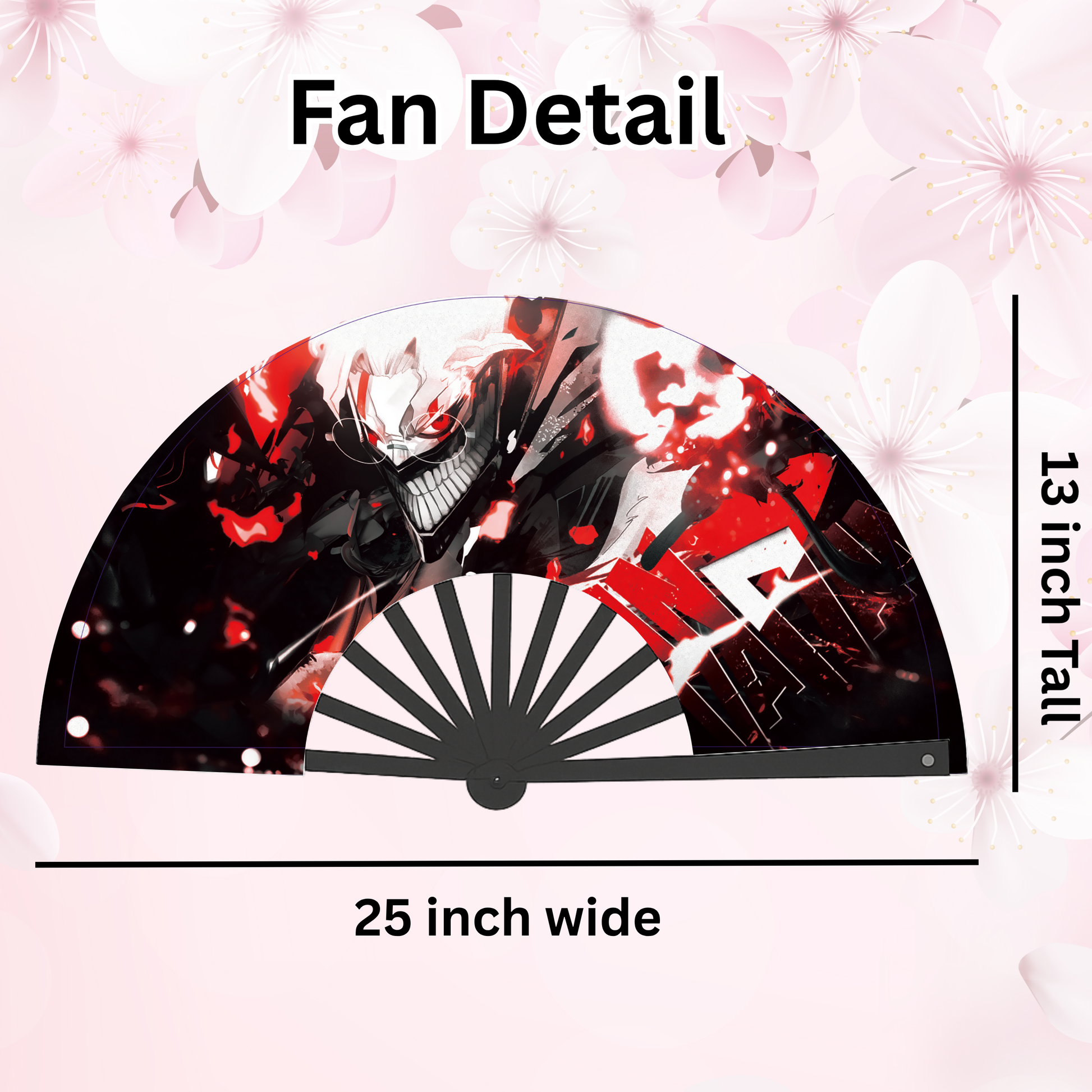 Okarun Anime Clack Fan | Glow Under Black Light | Folding Hand Fan for Rave, Party & Convention