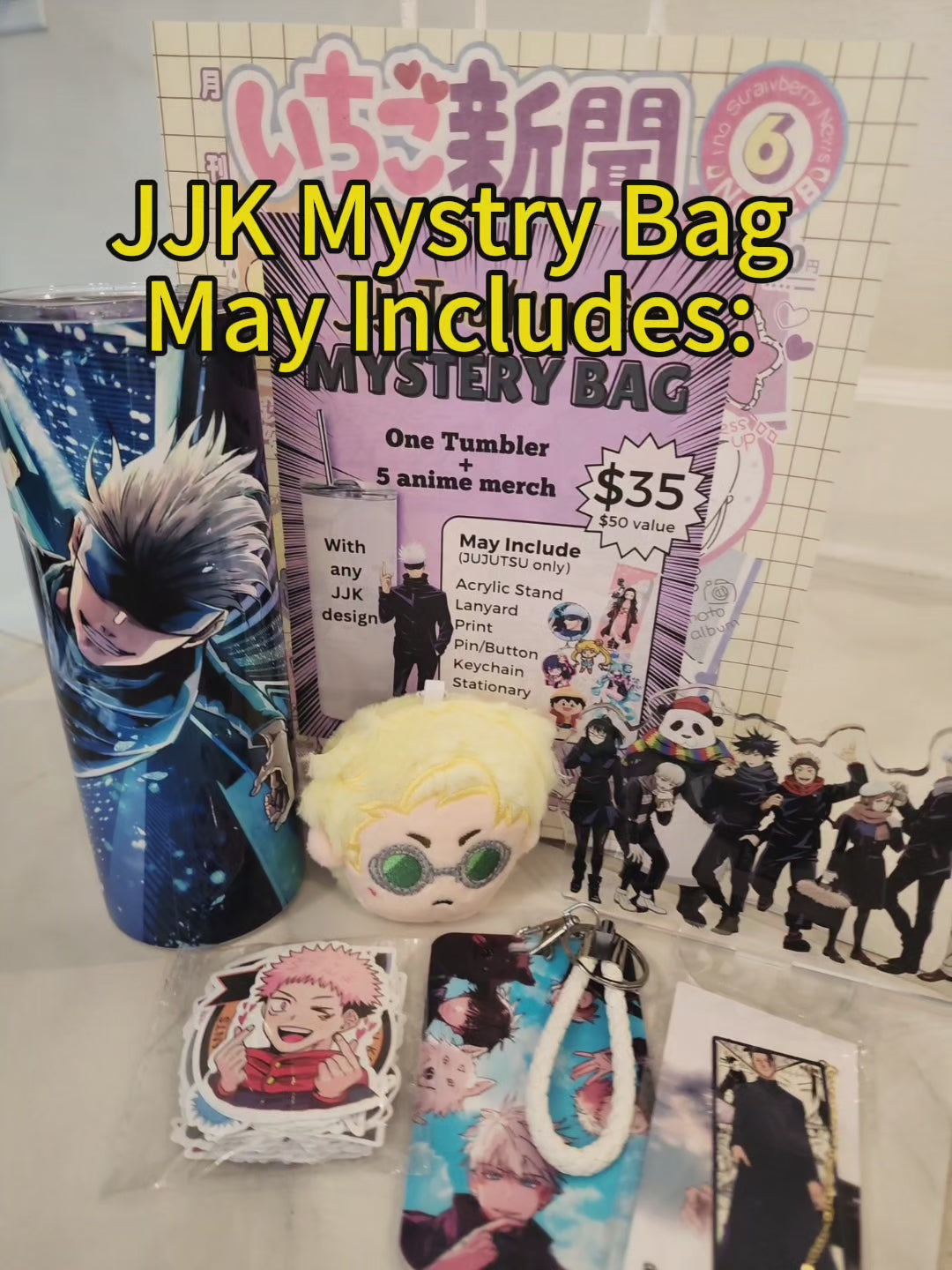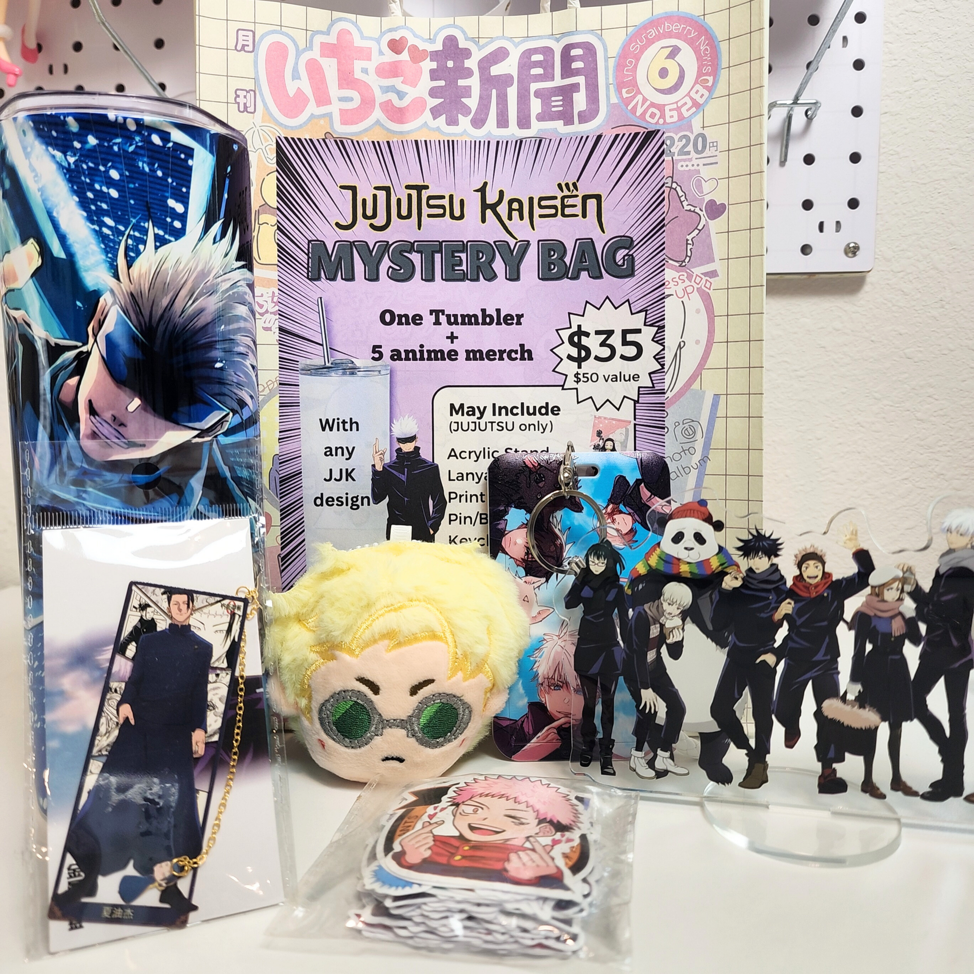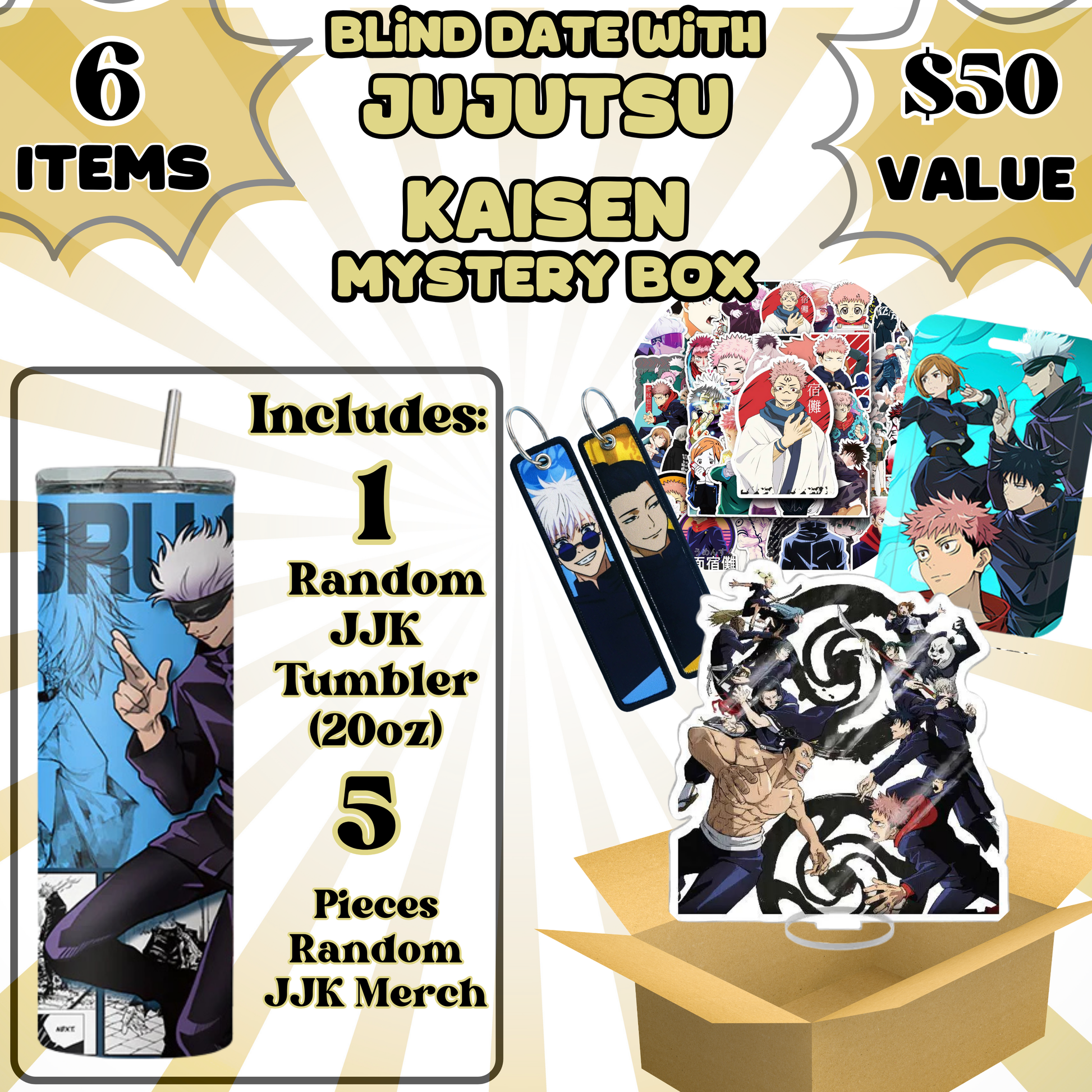 Blind Date with Jujutsu Kaisen Mystery Box – 20oz Tumbler + 5 Surprise Jujutsu Kaisen Merch Items