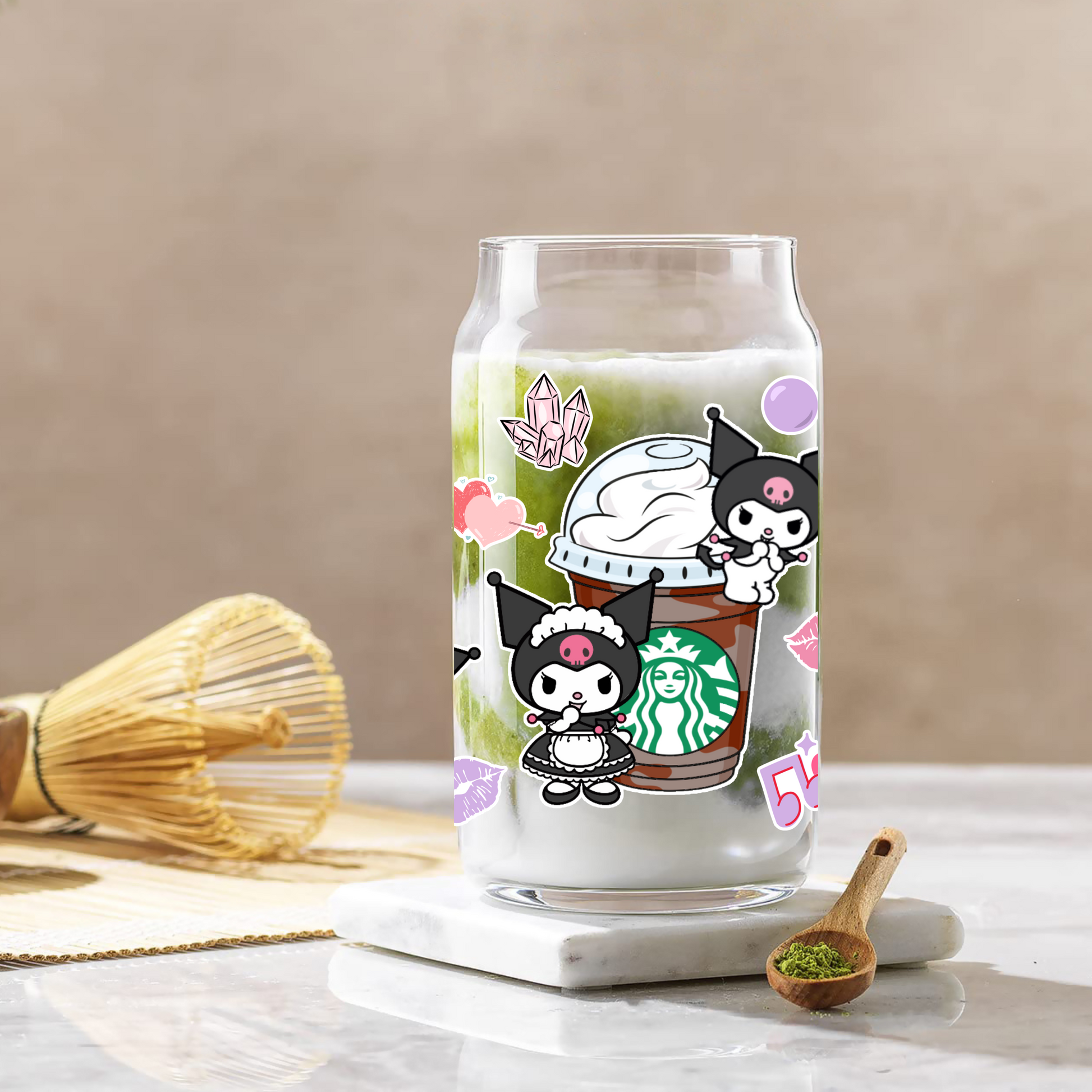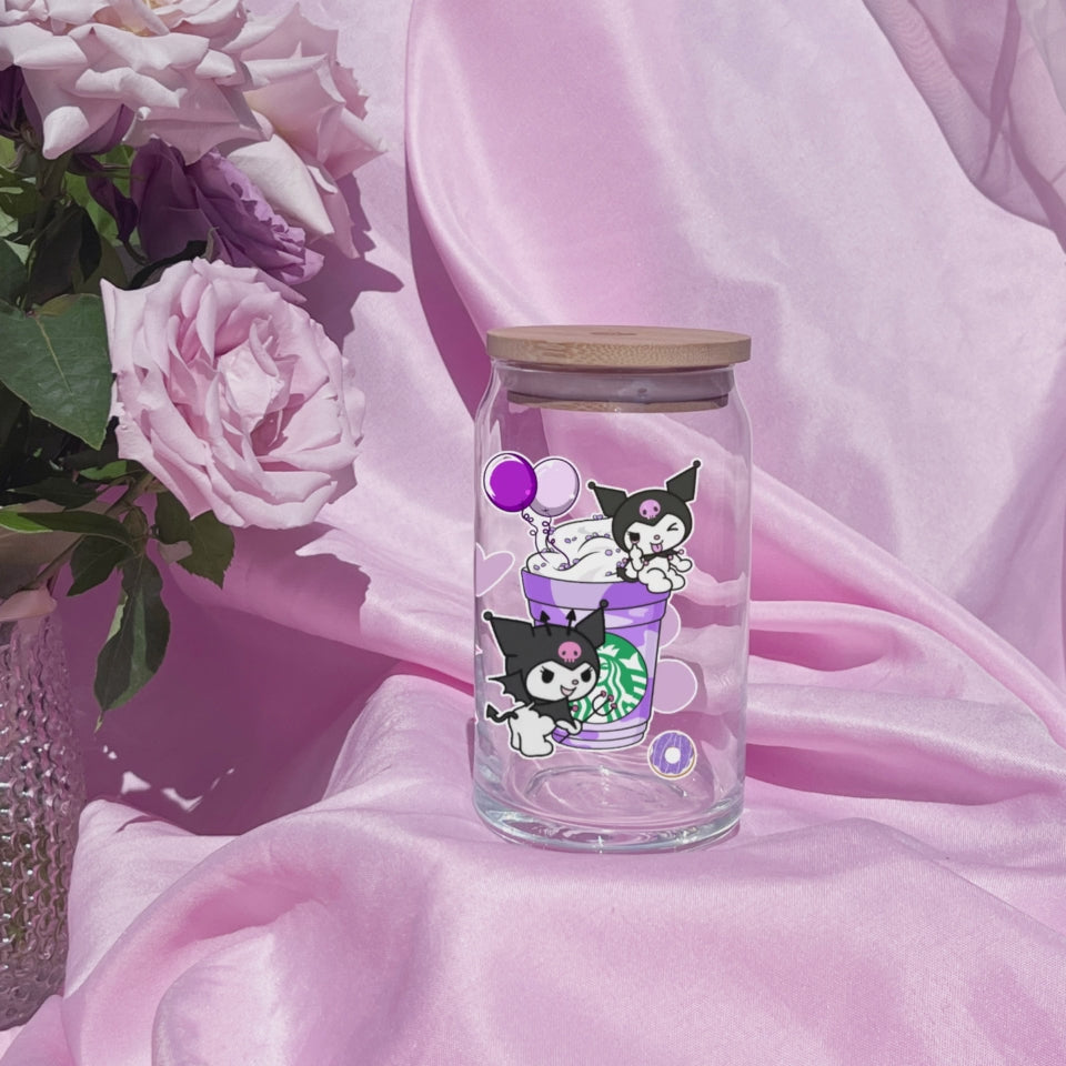 Kuromi with Starbucks Coffee cup Anime 16oz Beer Can Glass with Straw and Lid