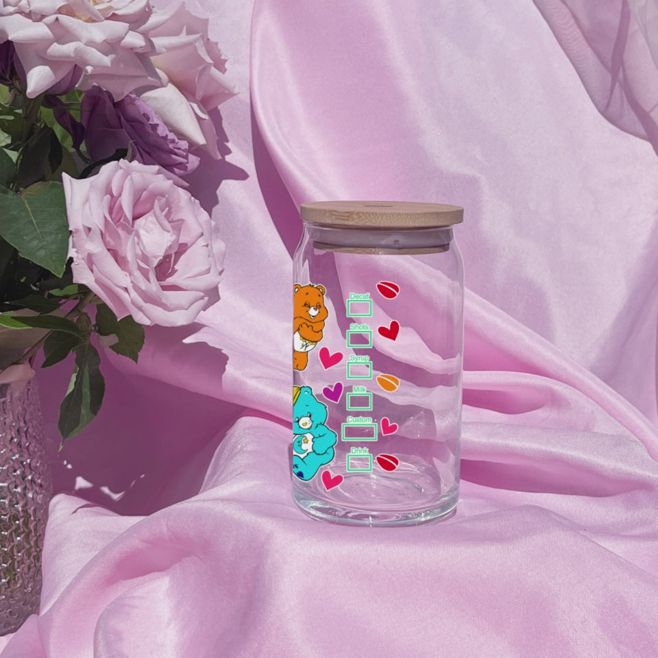 Care Bear Starbucks Coffee Anime 16oz Beer Can Glass with Straw and Lid
