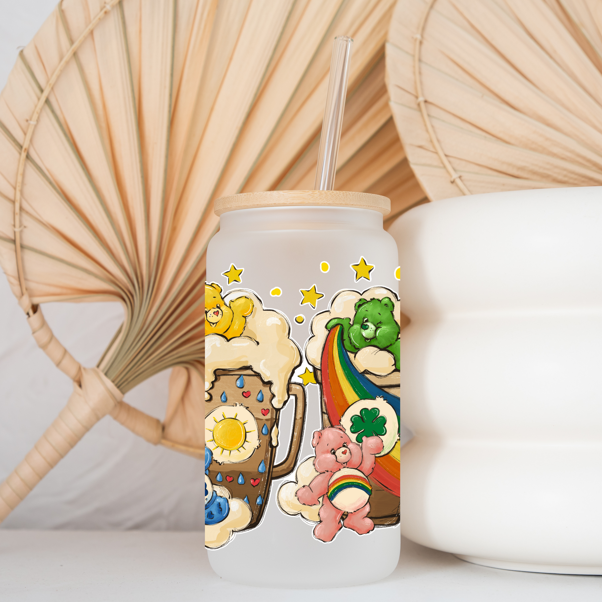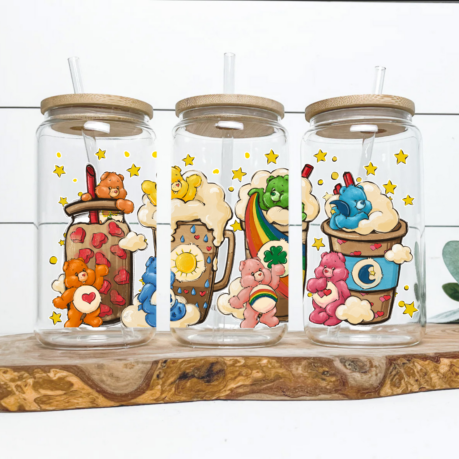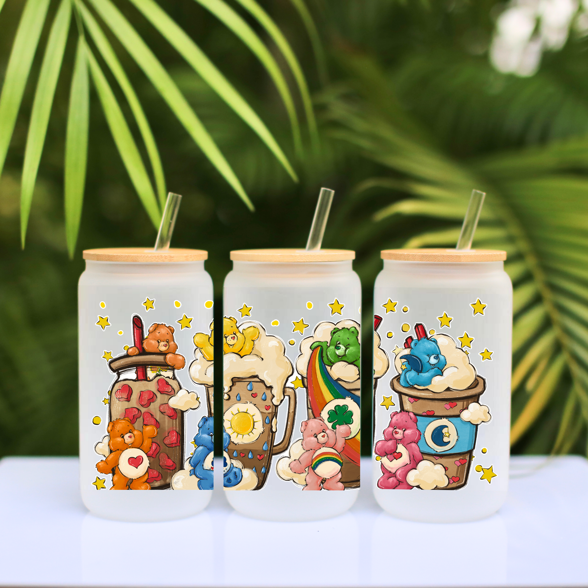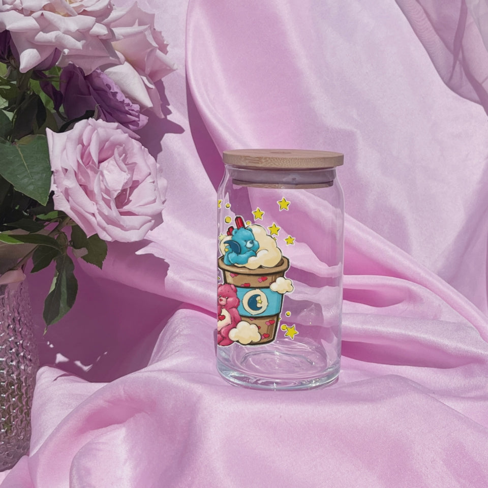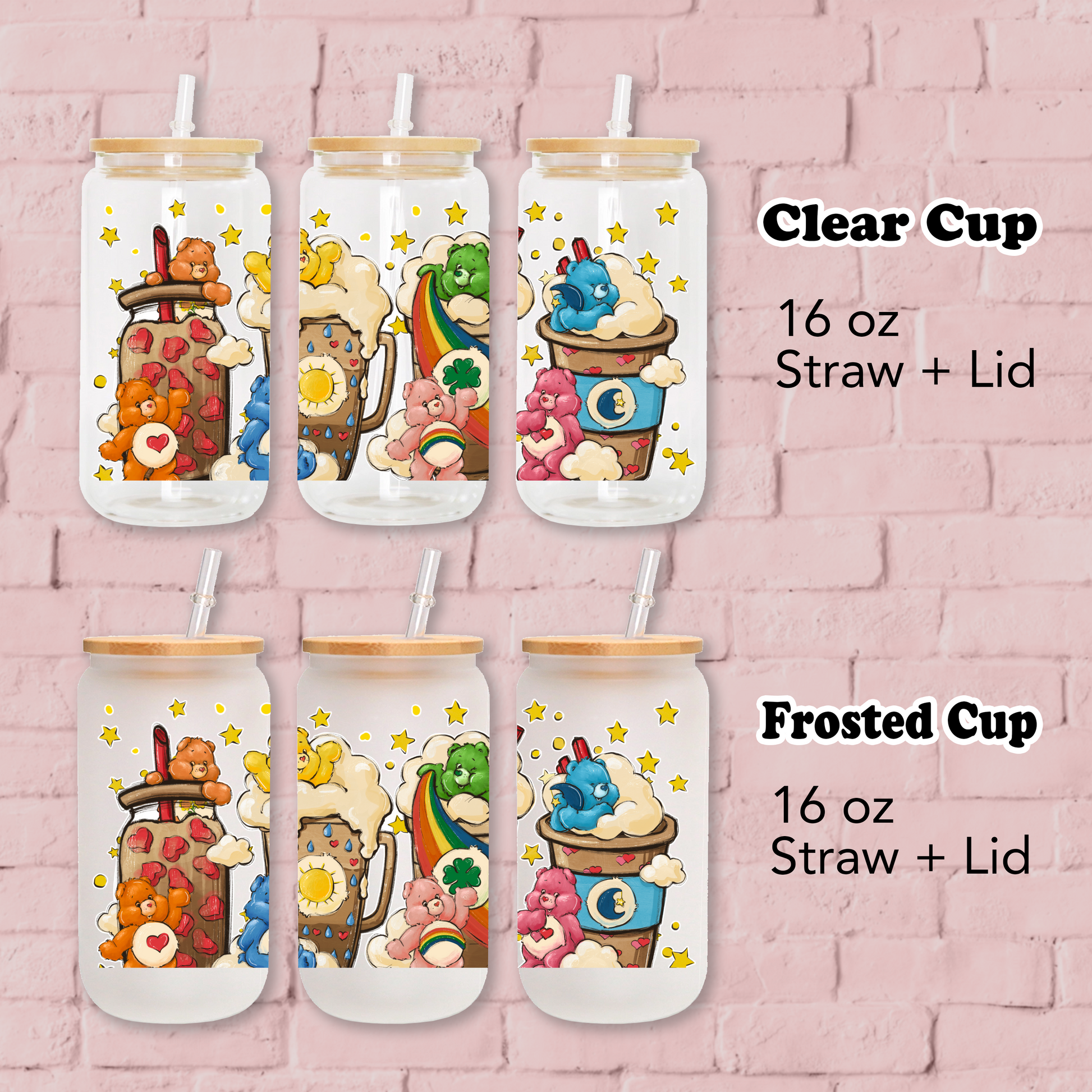 Care Bear Stars Coffee cup Anime 16oz Beer Can Glass with Straw and Lid