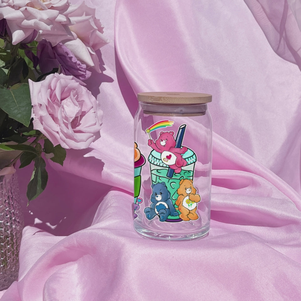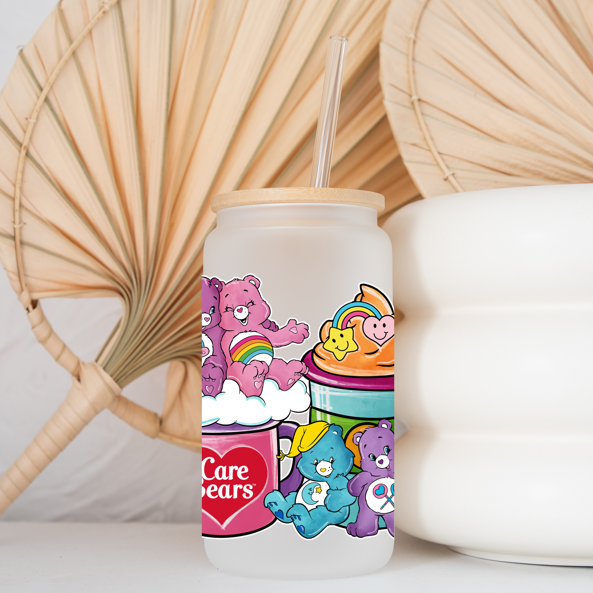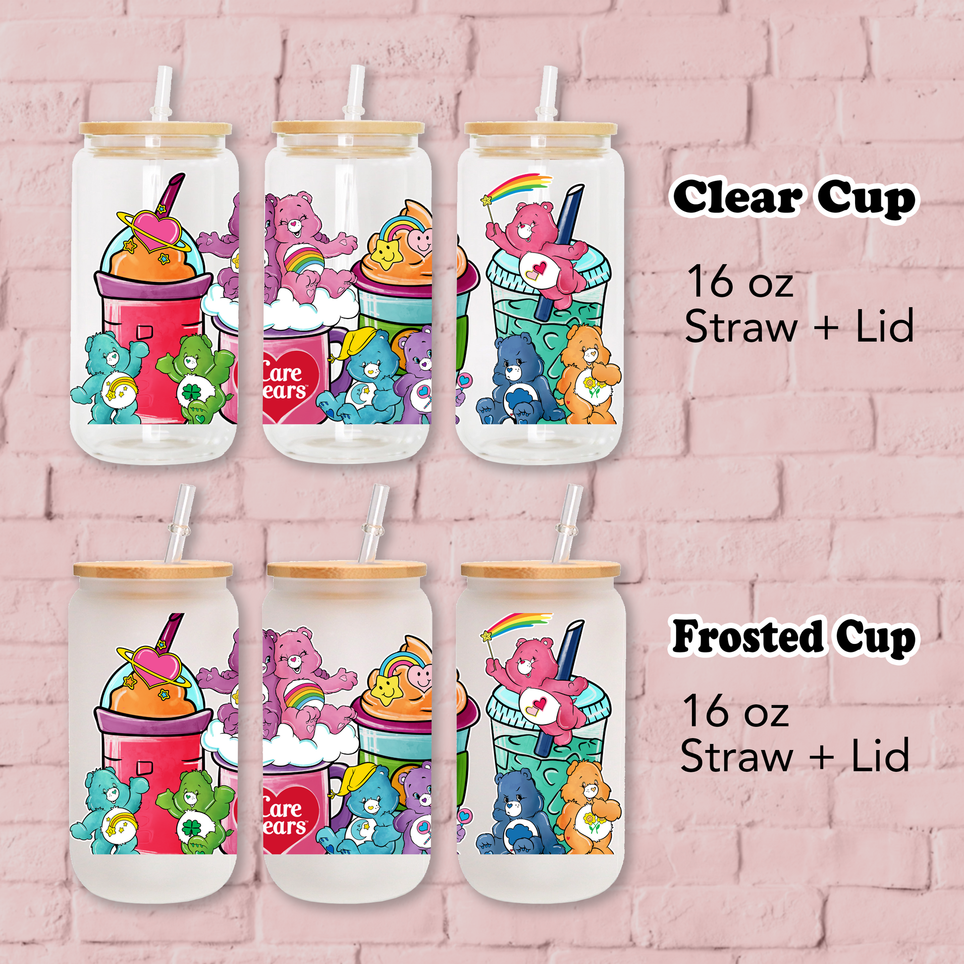 Care Bear Rainbow Coffee cup Anime 16oz Beer Can Glass with Straw and Lid