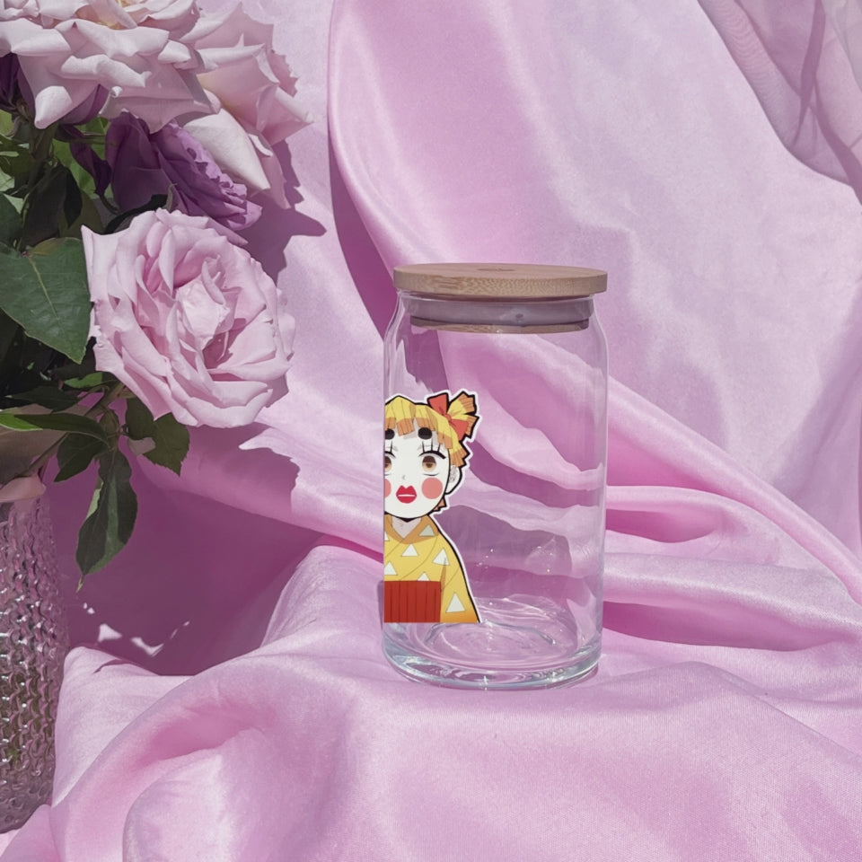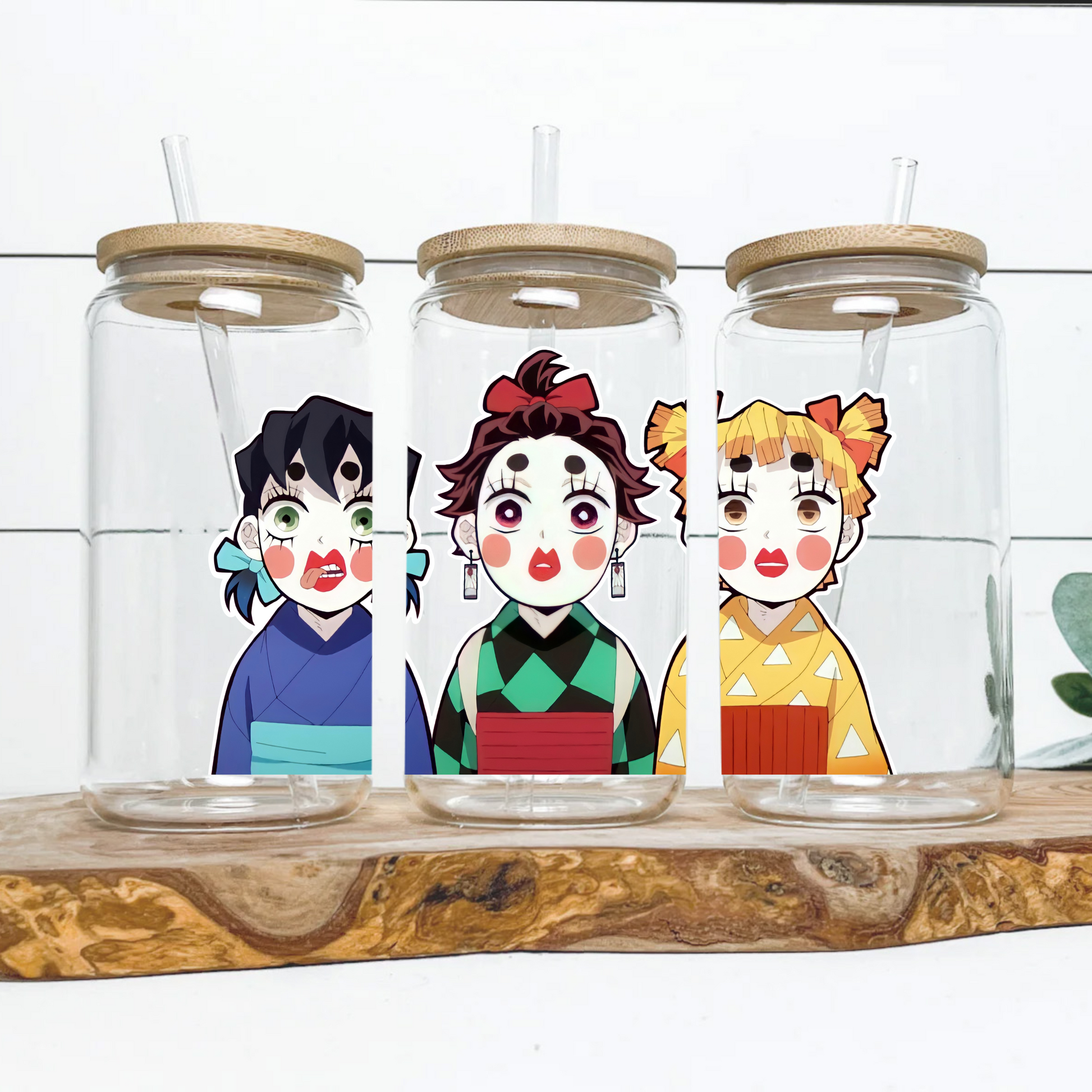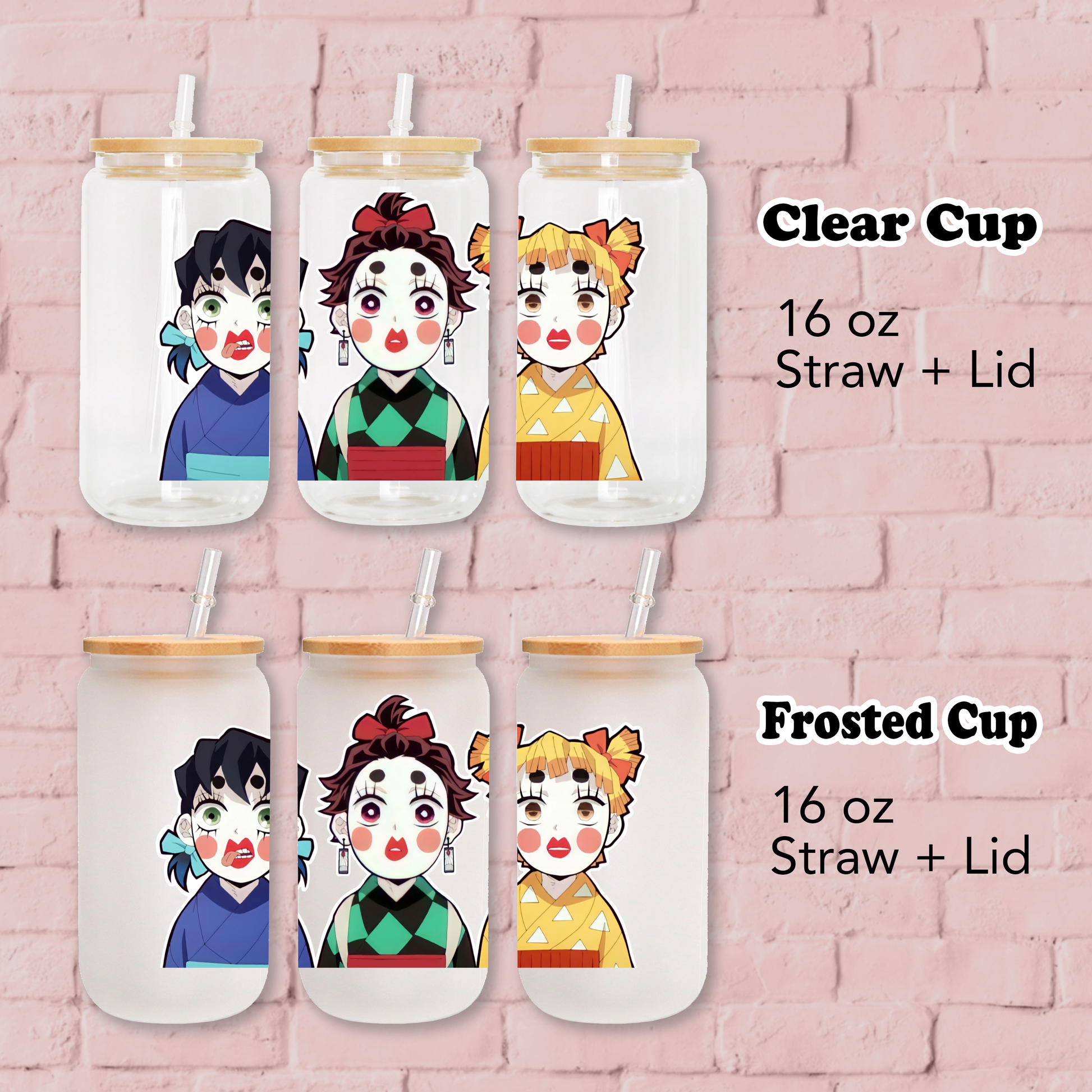 Demon Slayer Tanjiro, Zenitsu & InosukeAnime 16oz Beer Can Glass with Straw and Lid
