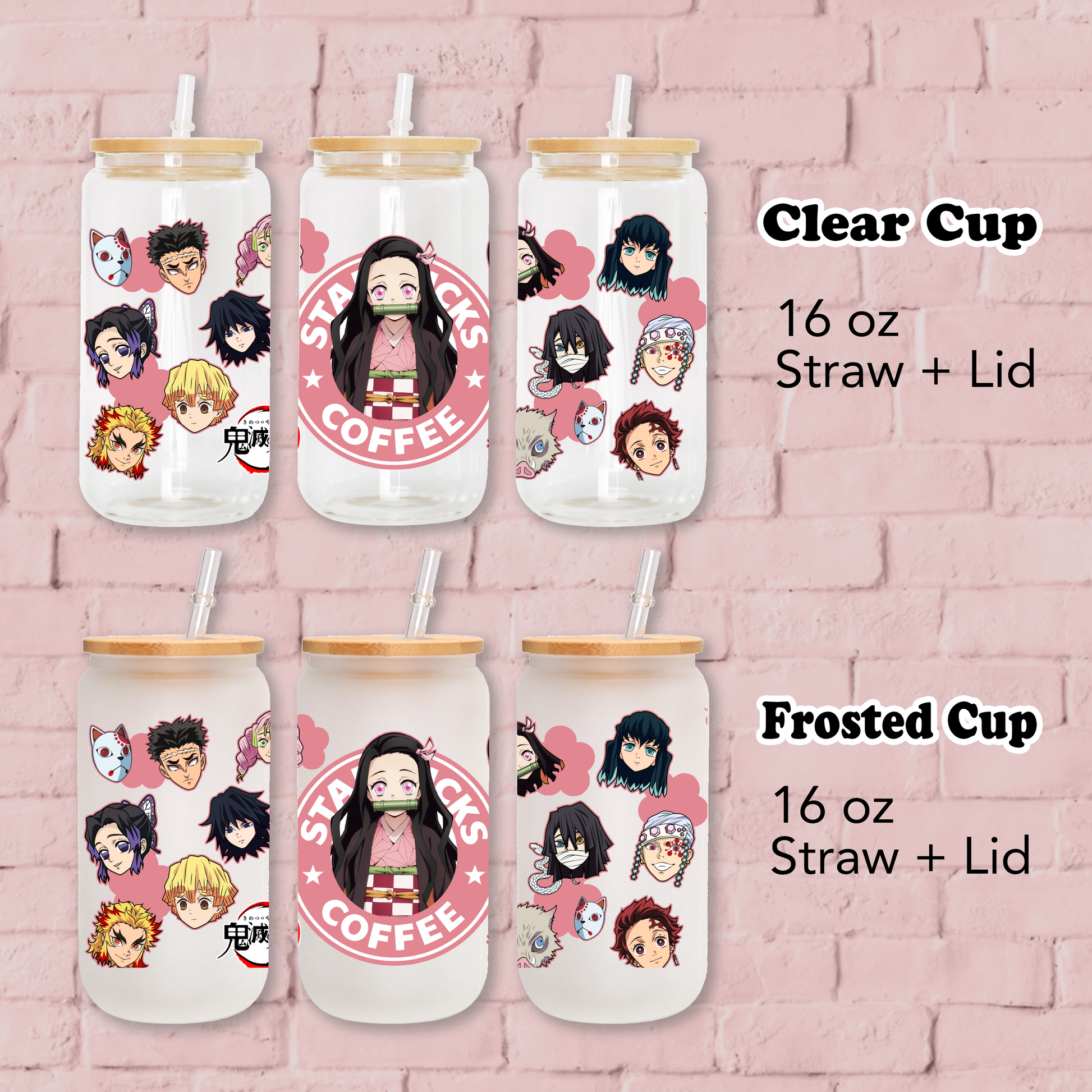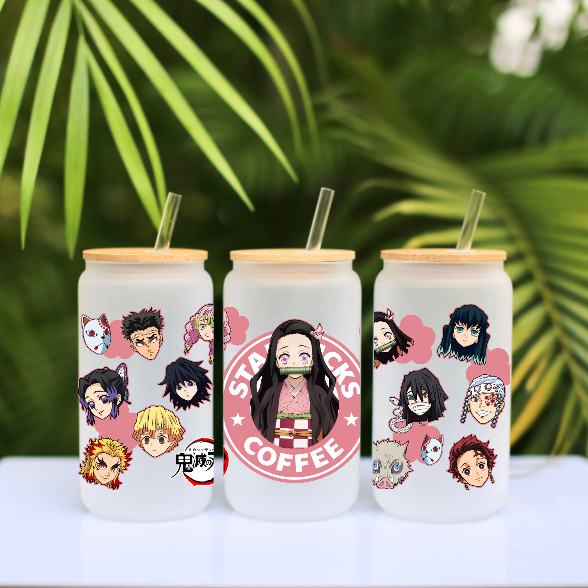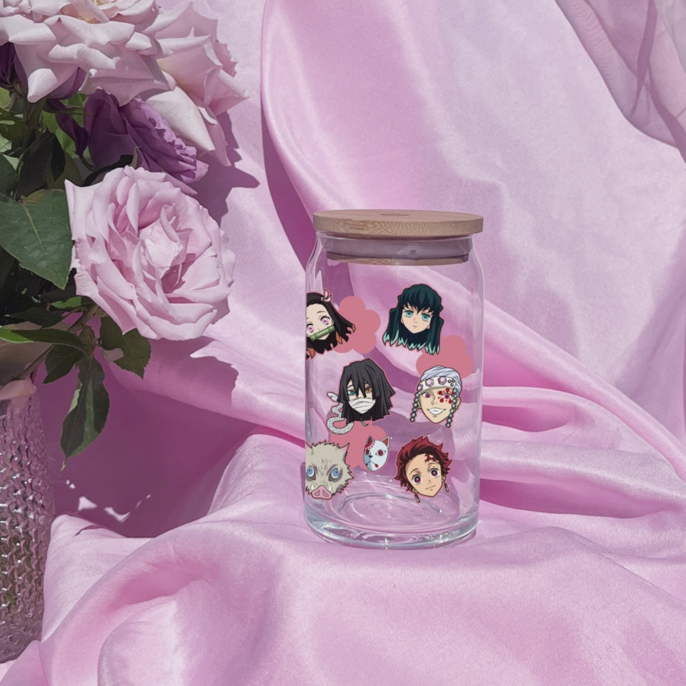 Demon Slayer- Nezuko Kamado Anime 16oz Beer Can Glass with Straw and Lid