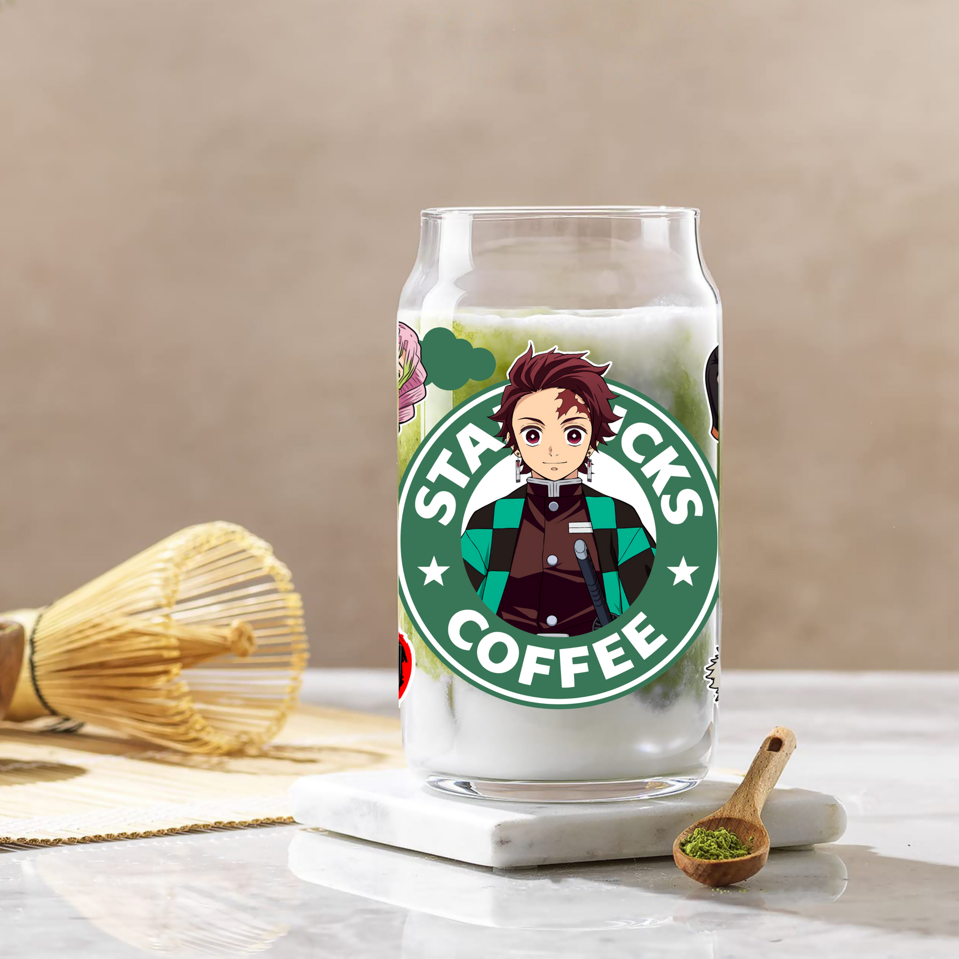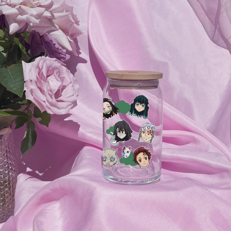 Demon Slayer- Tanjiro Kamado Anime 16oz Beer Can Glass with Straw and Lid