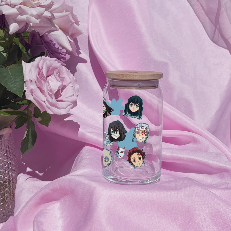 Demon Slayer-Inosuke Anime 16oz Beer Can Glass with Straw and Lid