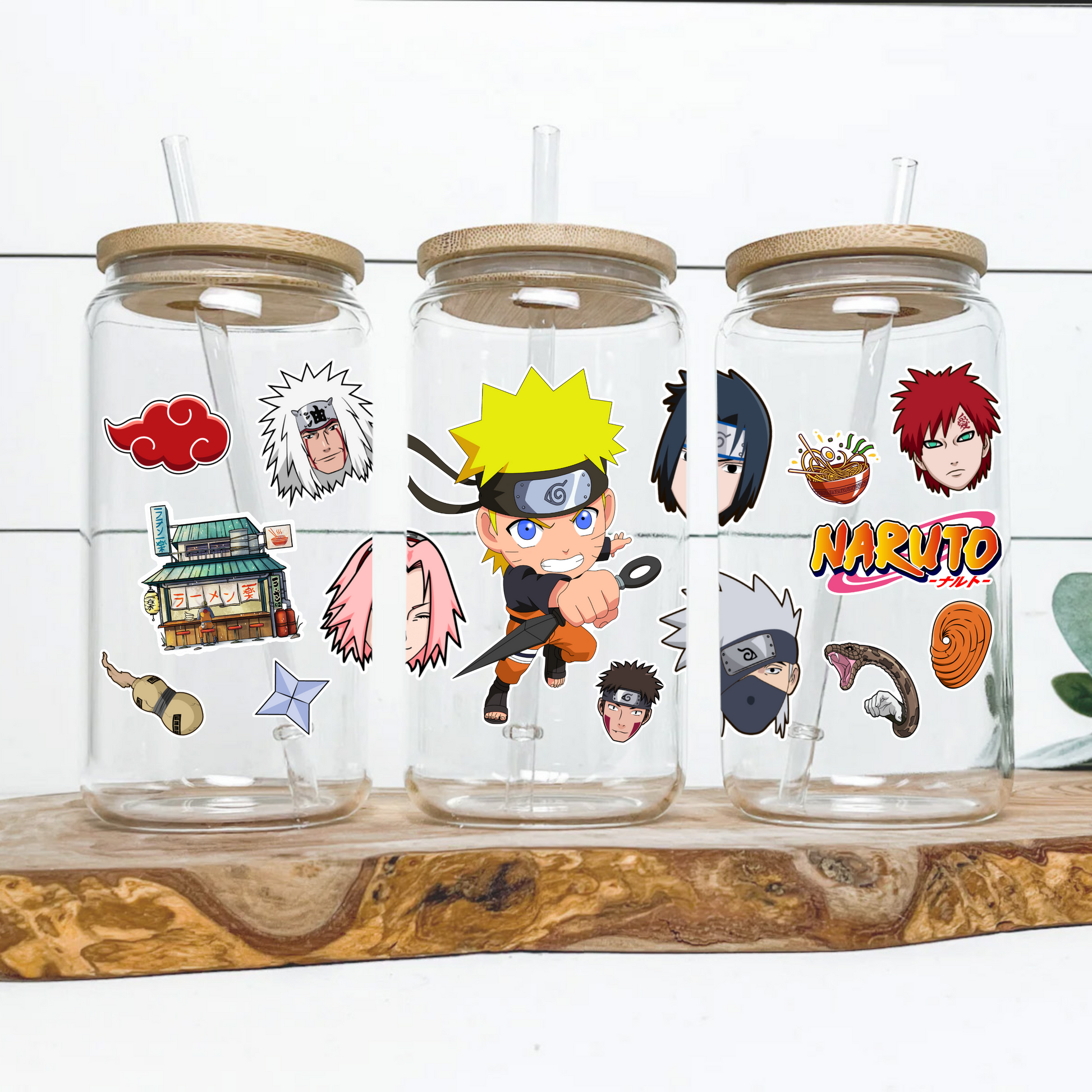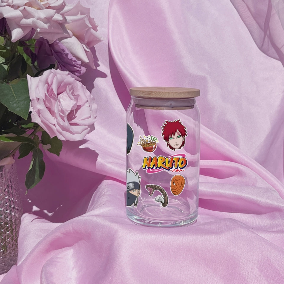 Naruto Anime 16oz Beer Can Glass with Straw and Lid