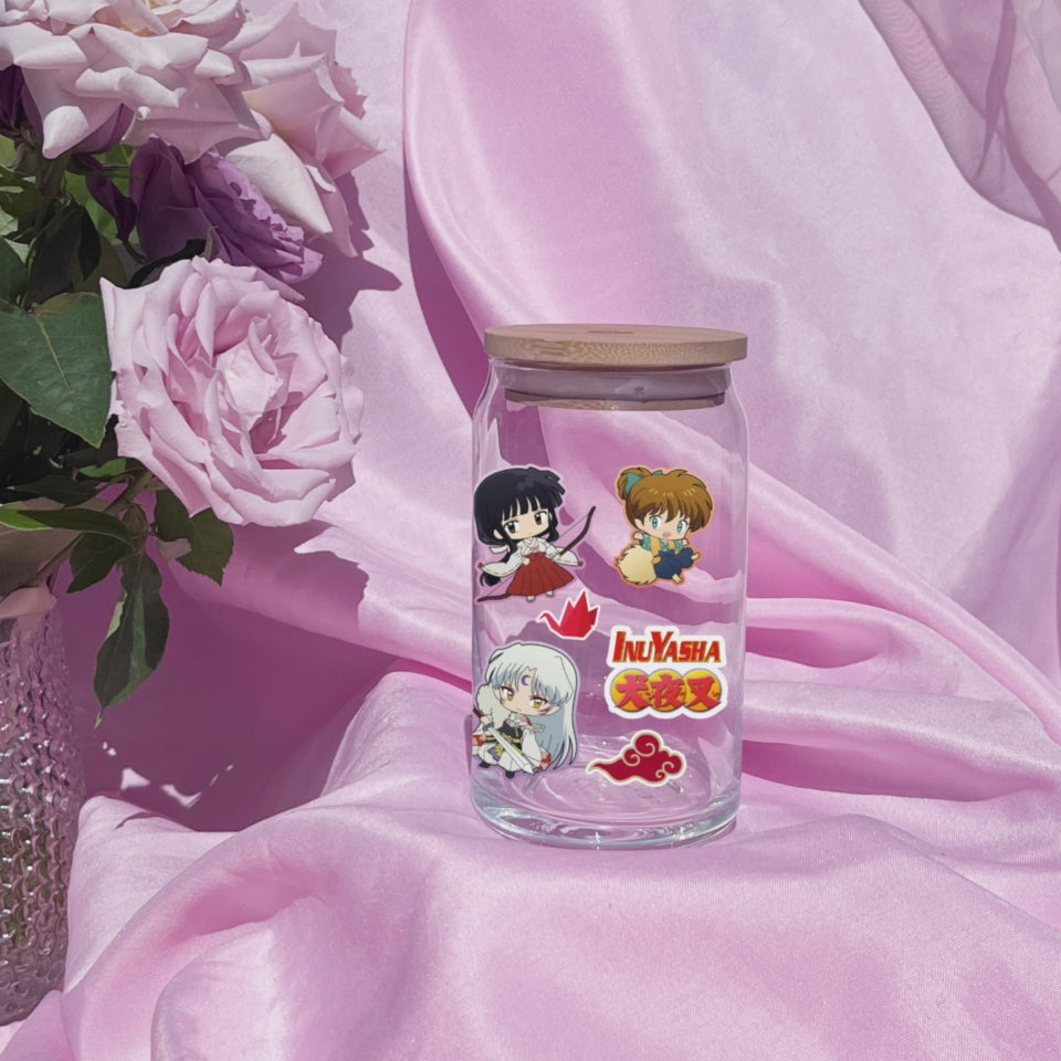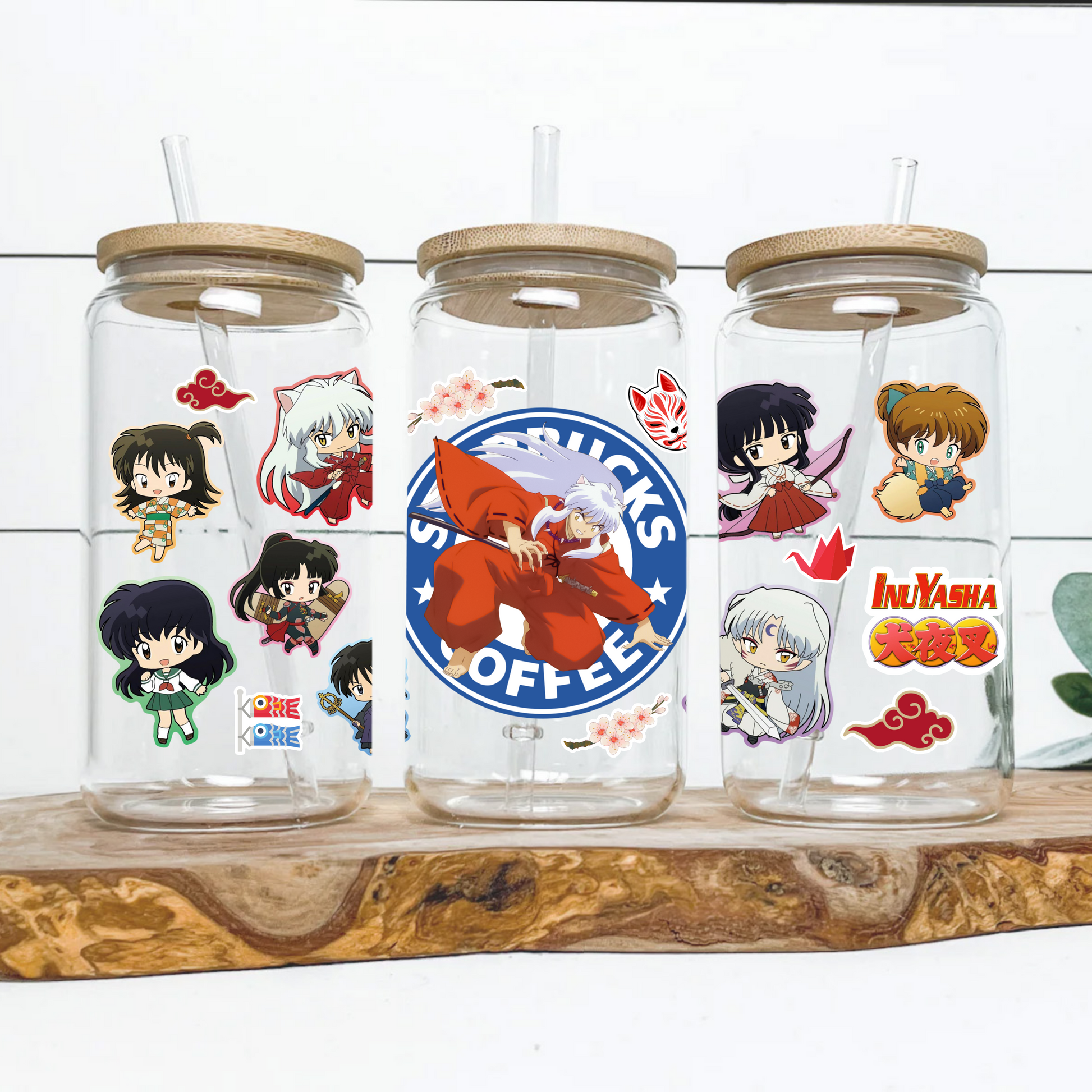 Inuyasha Starbucks Coffee Anime 16oz Beer Can Glass with Straw and Lid