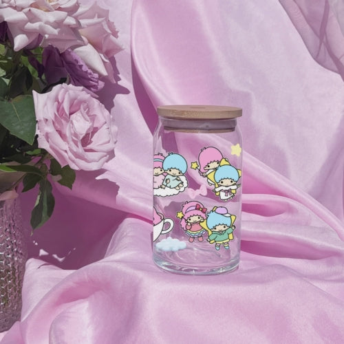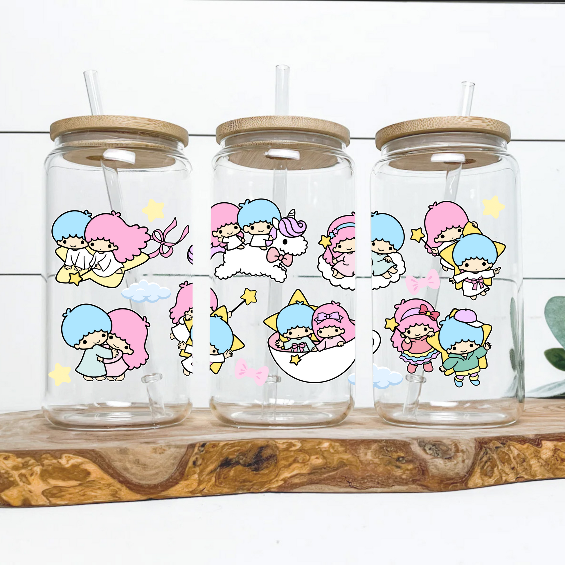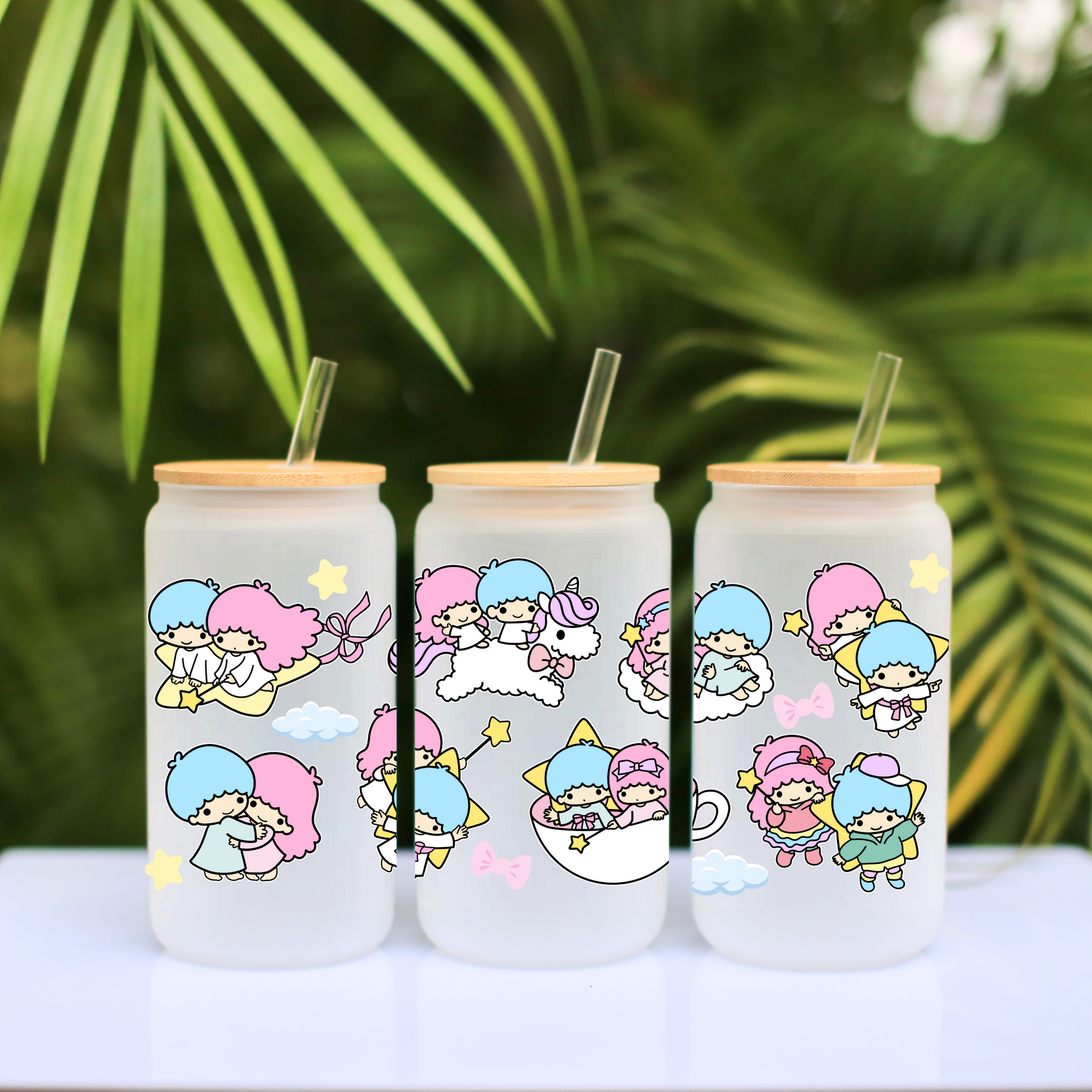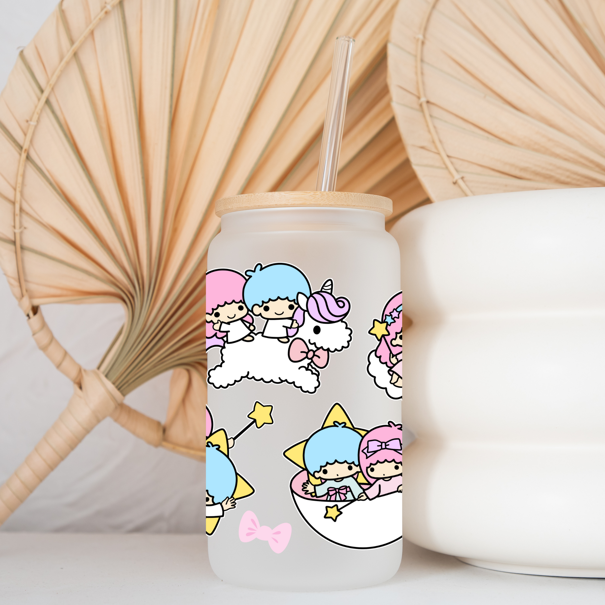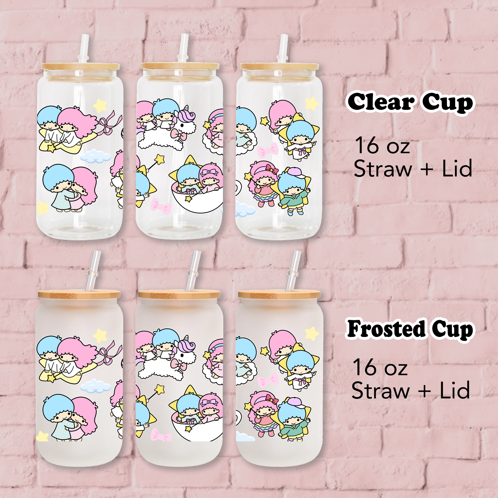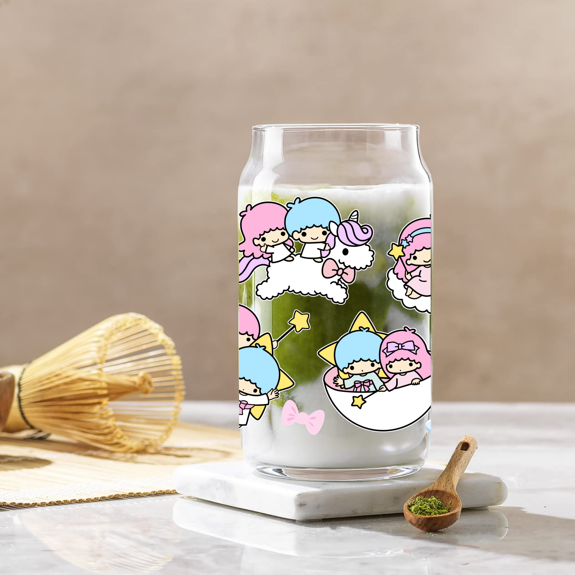 Little twin star Anime 16oz Beer Can Glass with Straw and Lid