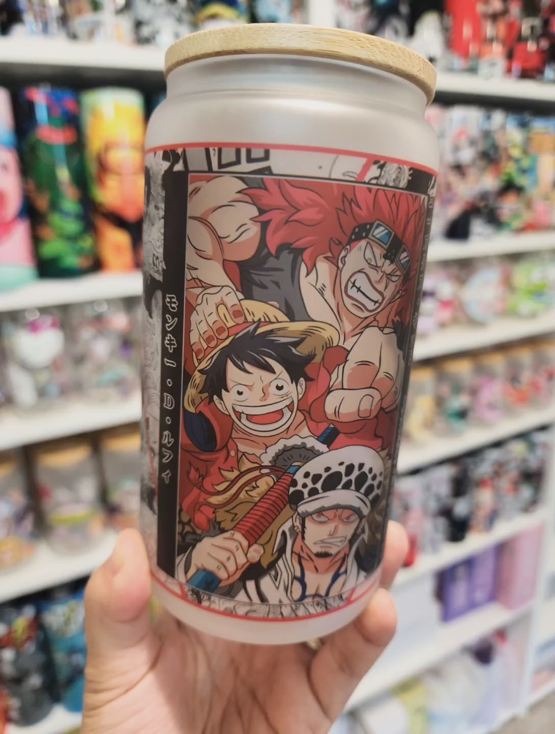 One Piece Anime Matte/ Frosted Glass cup 16oz Beer Can Glass with Straw and Lid