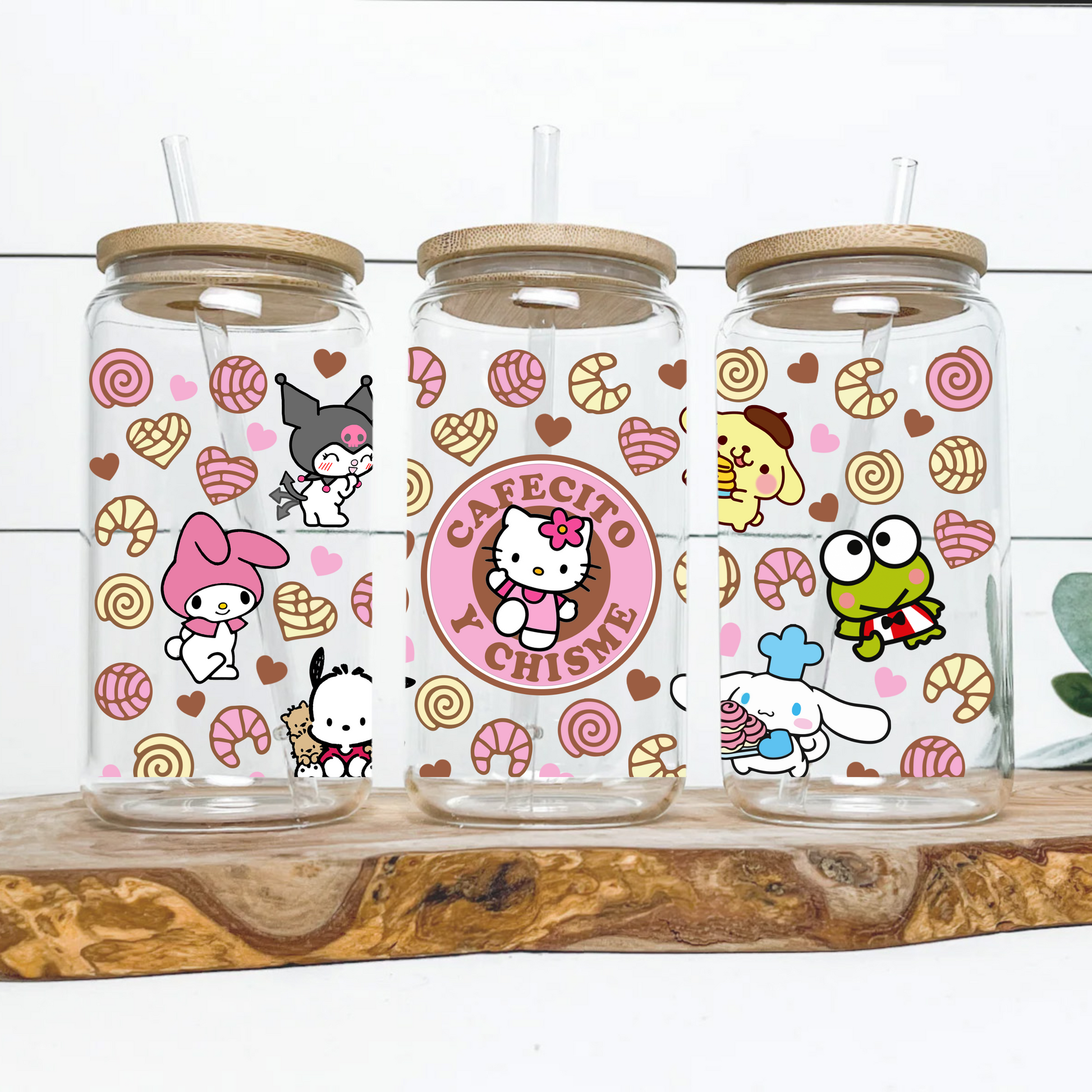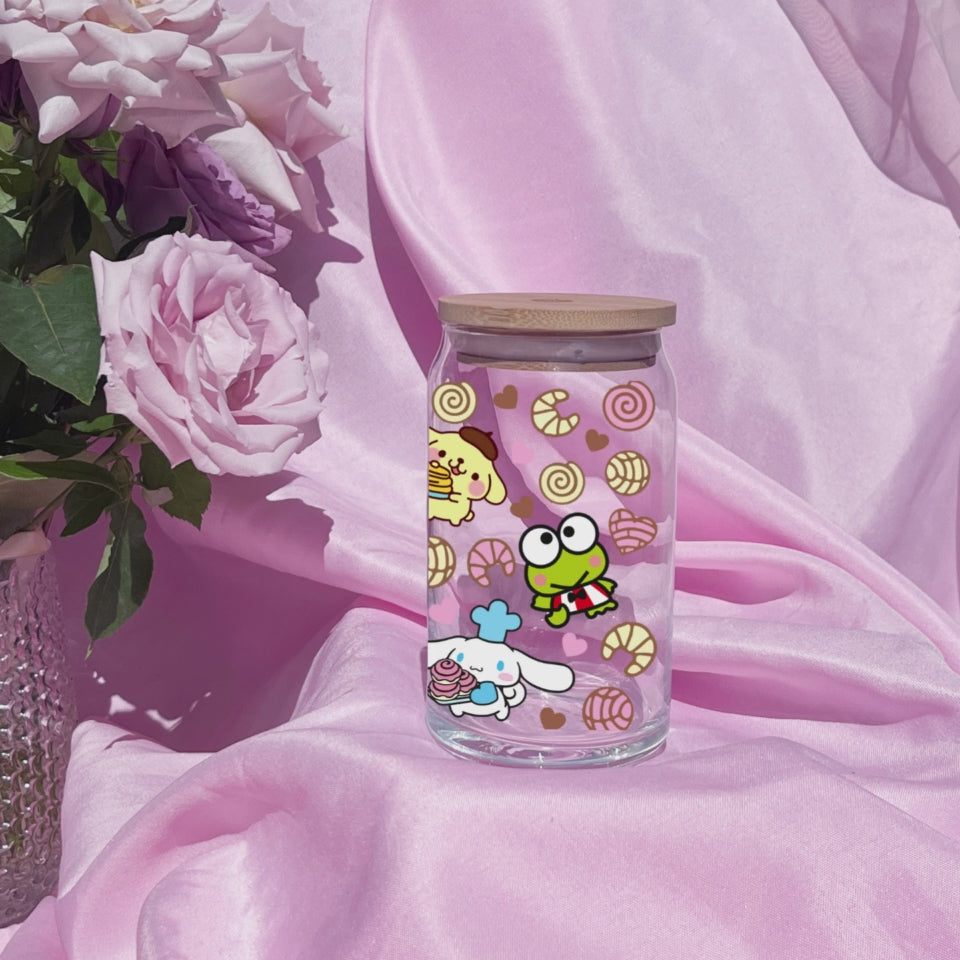 Hello Kitty Cafecito cup Anime 16oz Beer Can Glass with Straw and Lid