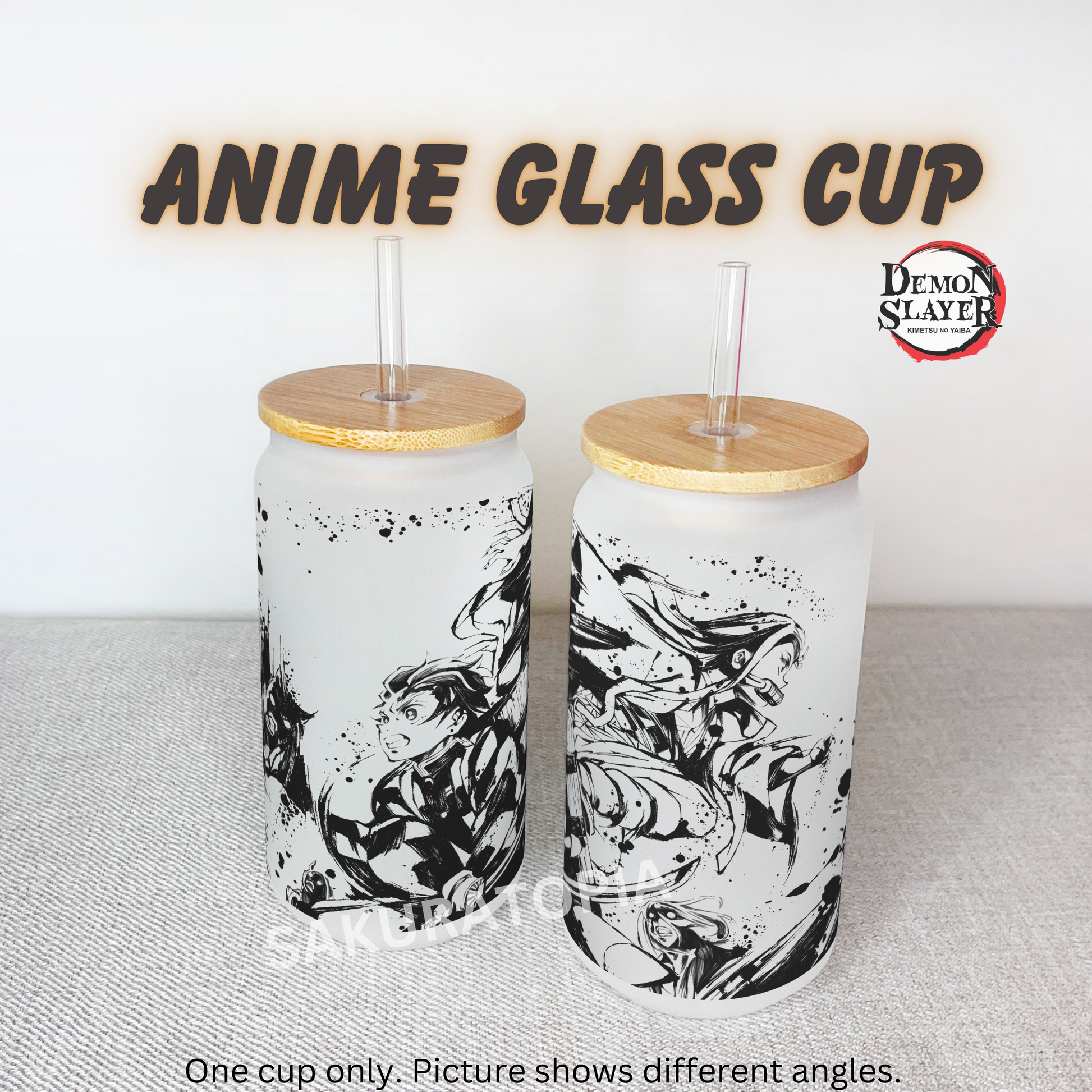 Demon Slayer Anime Matte/ Frosted Glass cup 16oz Beer Can Glass with Straw and Lid