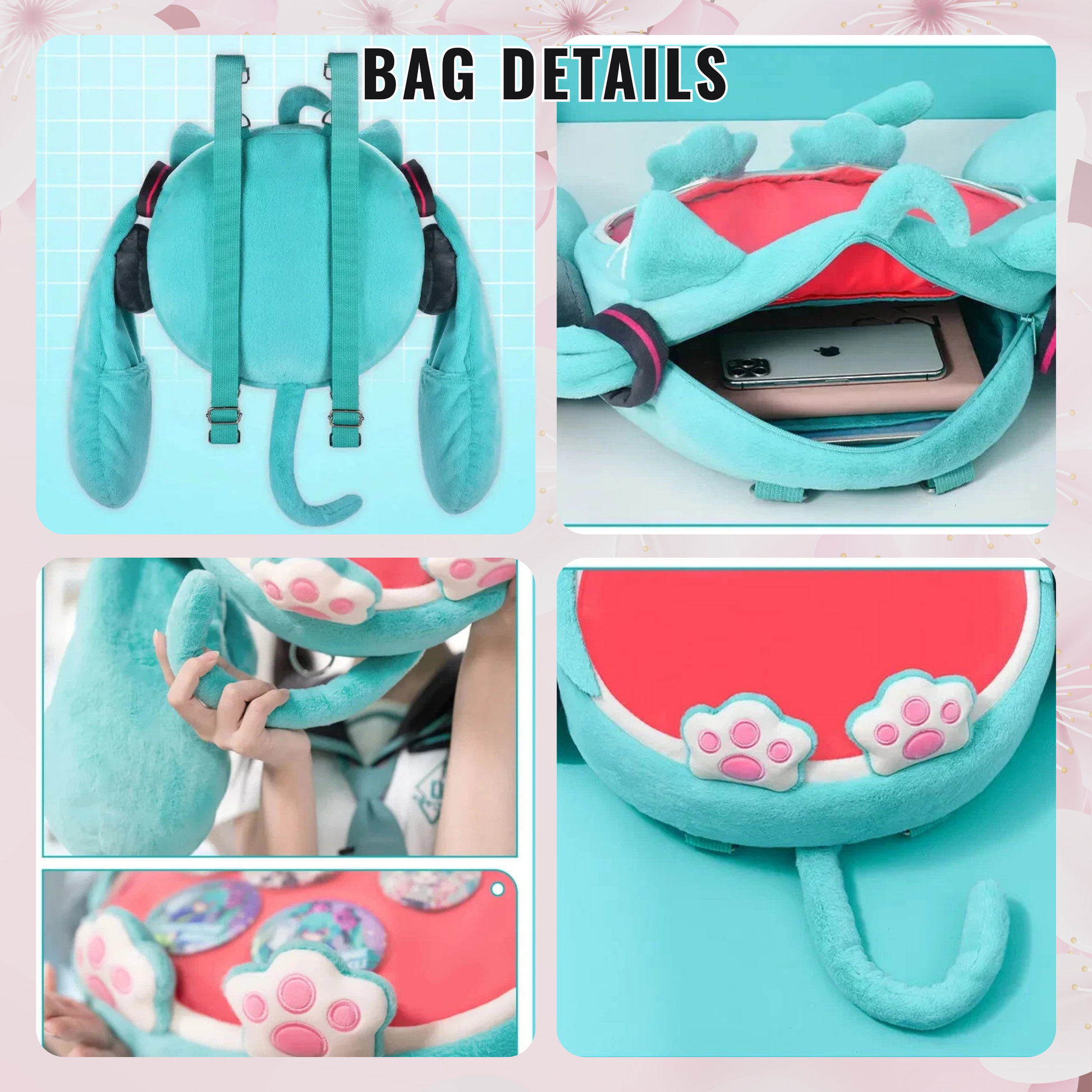 Hatsune Miku Cat Face Plush ITA Backpack, Adjustable Strap Bag, convertible cross body & backpack ita bag Kawaii Anime Backpack Bag for Birthday Gift