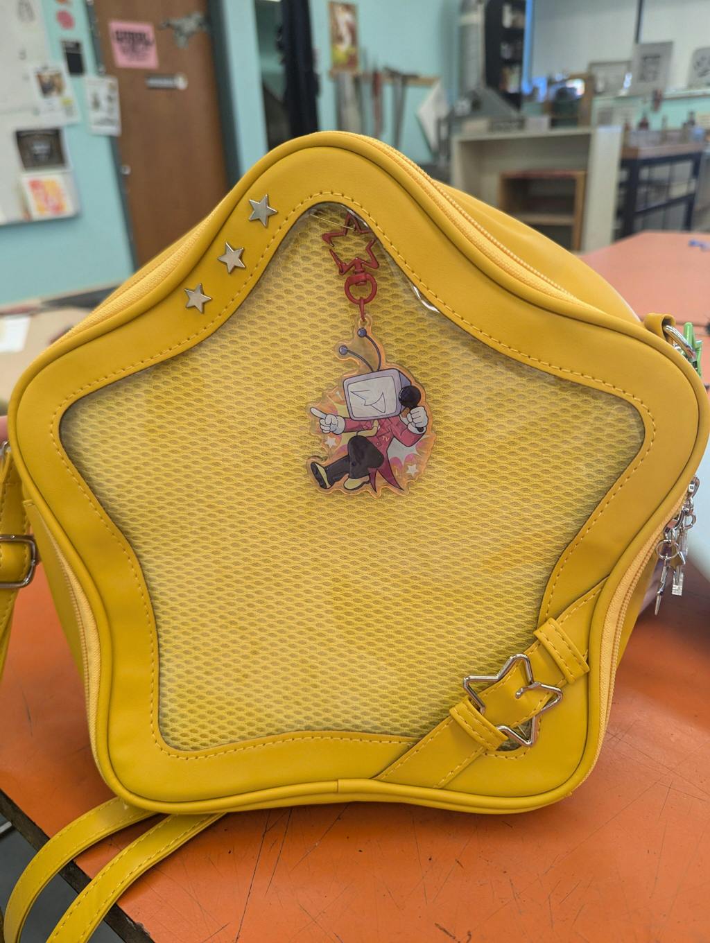 Yellow Star ITA backpack, kawaii star bag, ita backpack, enamel pin ita bag, PU leather ita bag, cosplay bag, anime convention ita bag