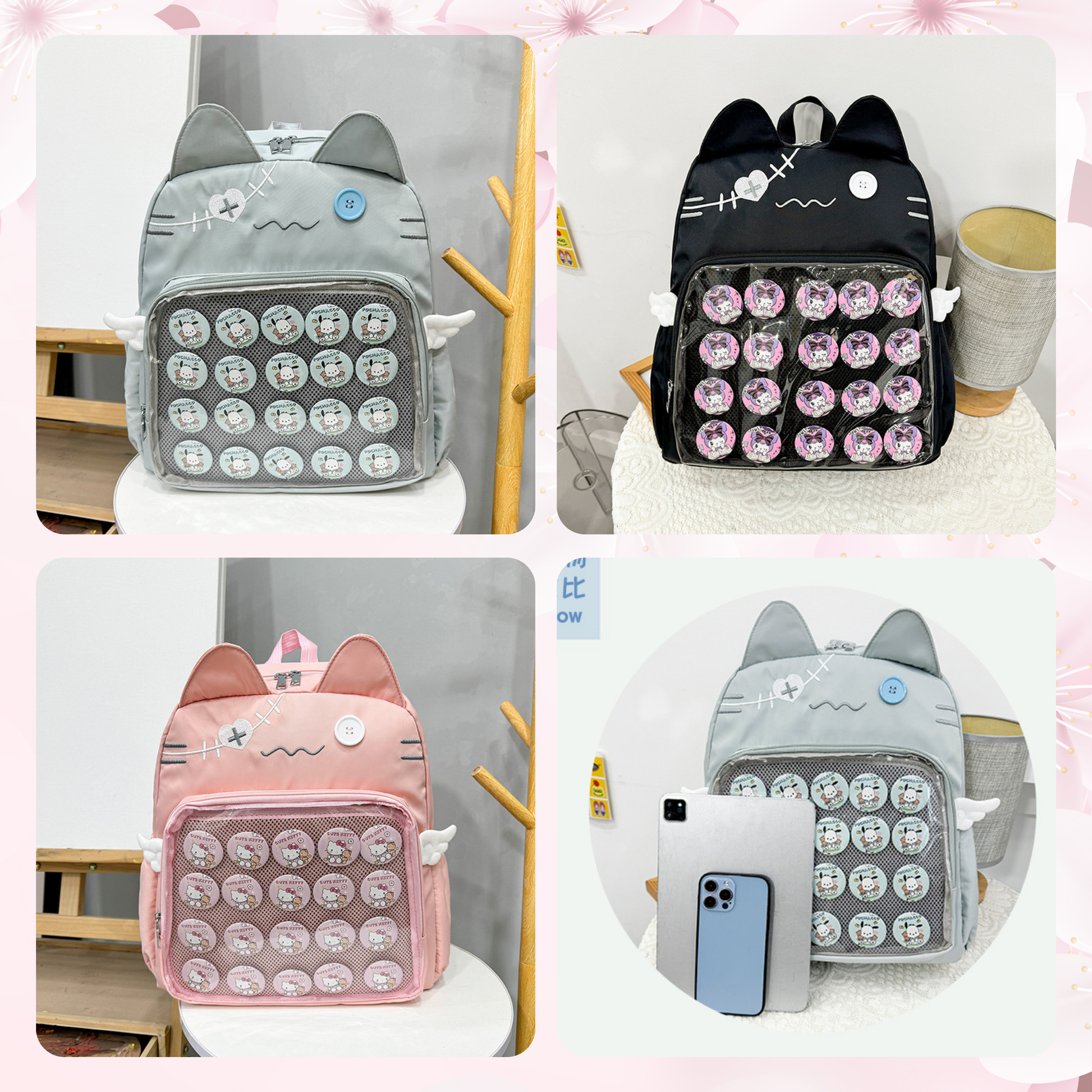 CatFace ita backpack, Kawaii ITA backpack, pin display bag, clear window ita bag, anime convention bag, kawaii ita bag, enamel pin bag