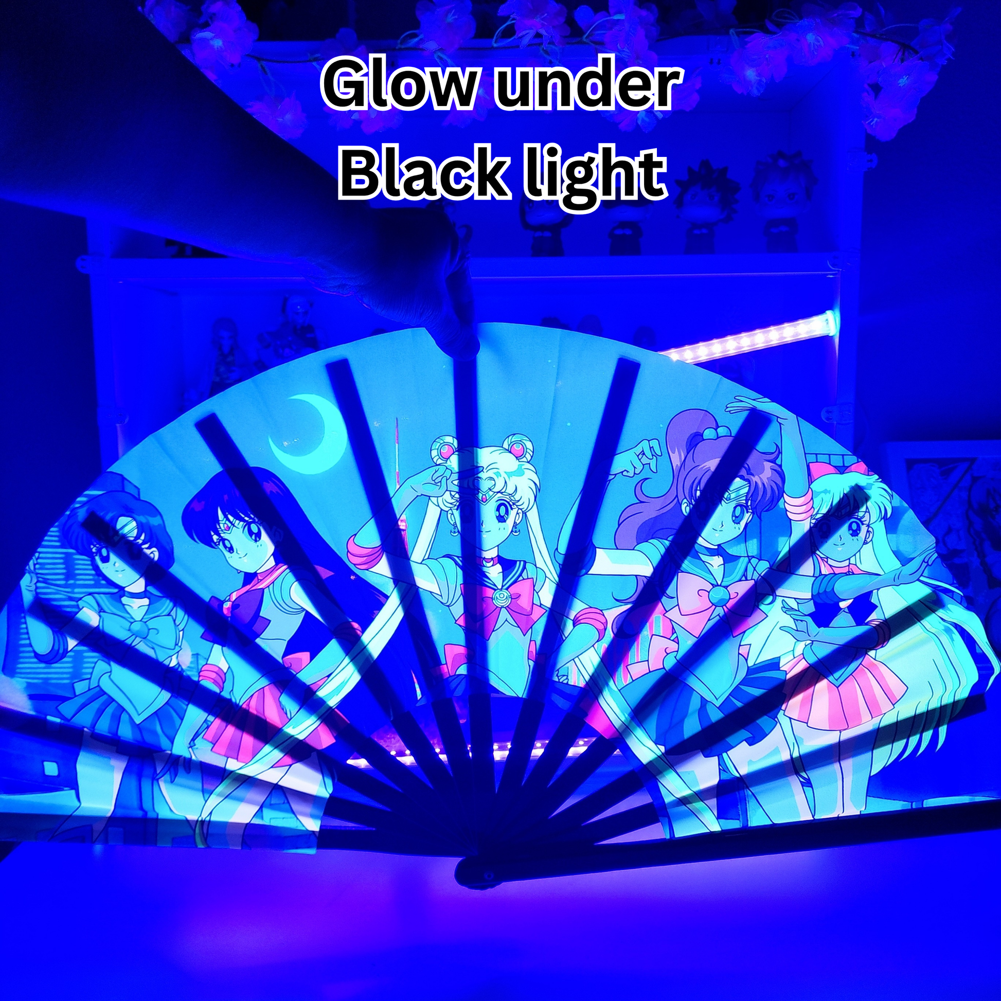 Sailor Moon Anime Clack Fan | Glow Under Black Light | Folding Hand Fan for Rave, Party & Convention