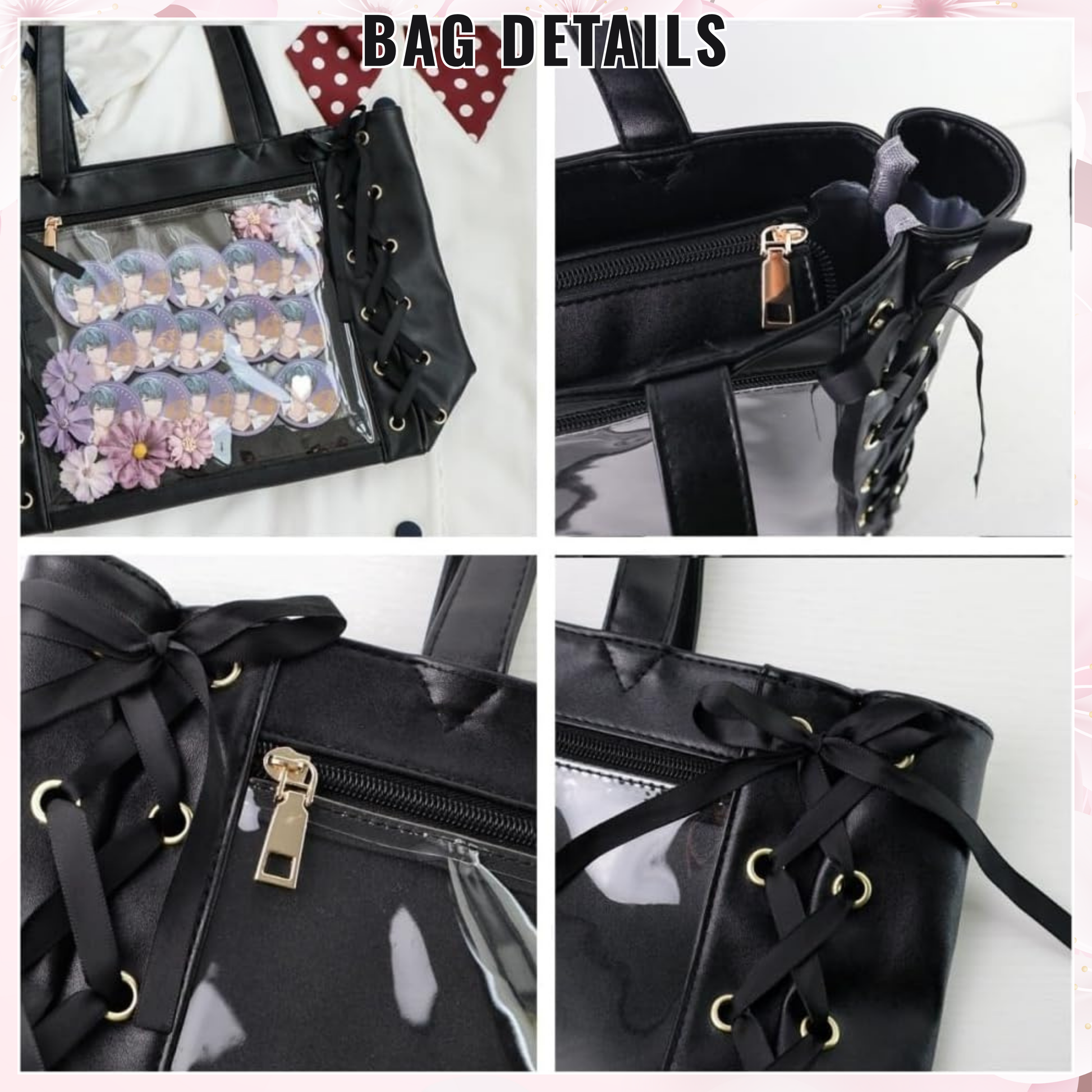 Showcase your enamel pins and charms in style with this Ribbon Ita Bag! Designed with a cute bow accent and a large transparent display window, this bag is perfect for anime fans, kawaii fashion lovers, and collectors who want to carry their favorite merch everywhere. Its big capacity makes it both fashionable and practical – ideal for daily use, conventions, or gifting.