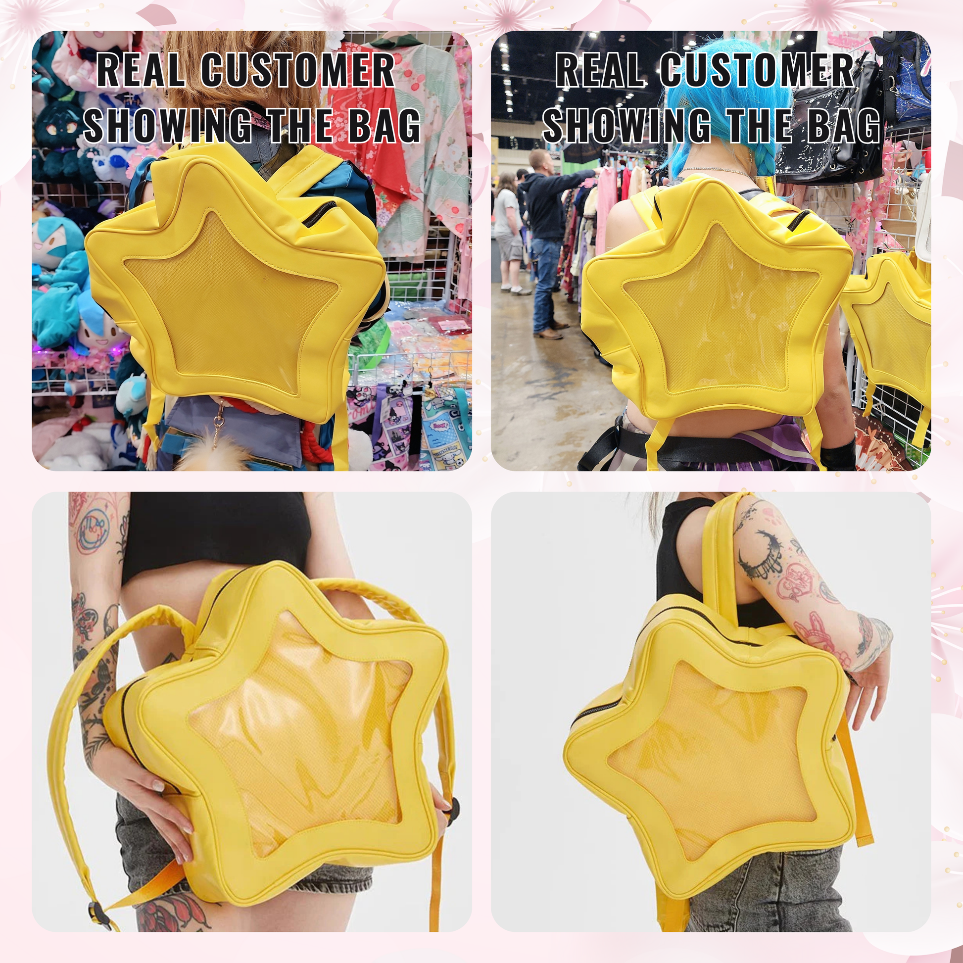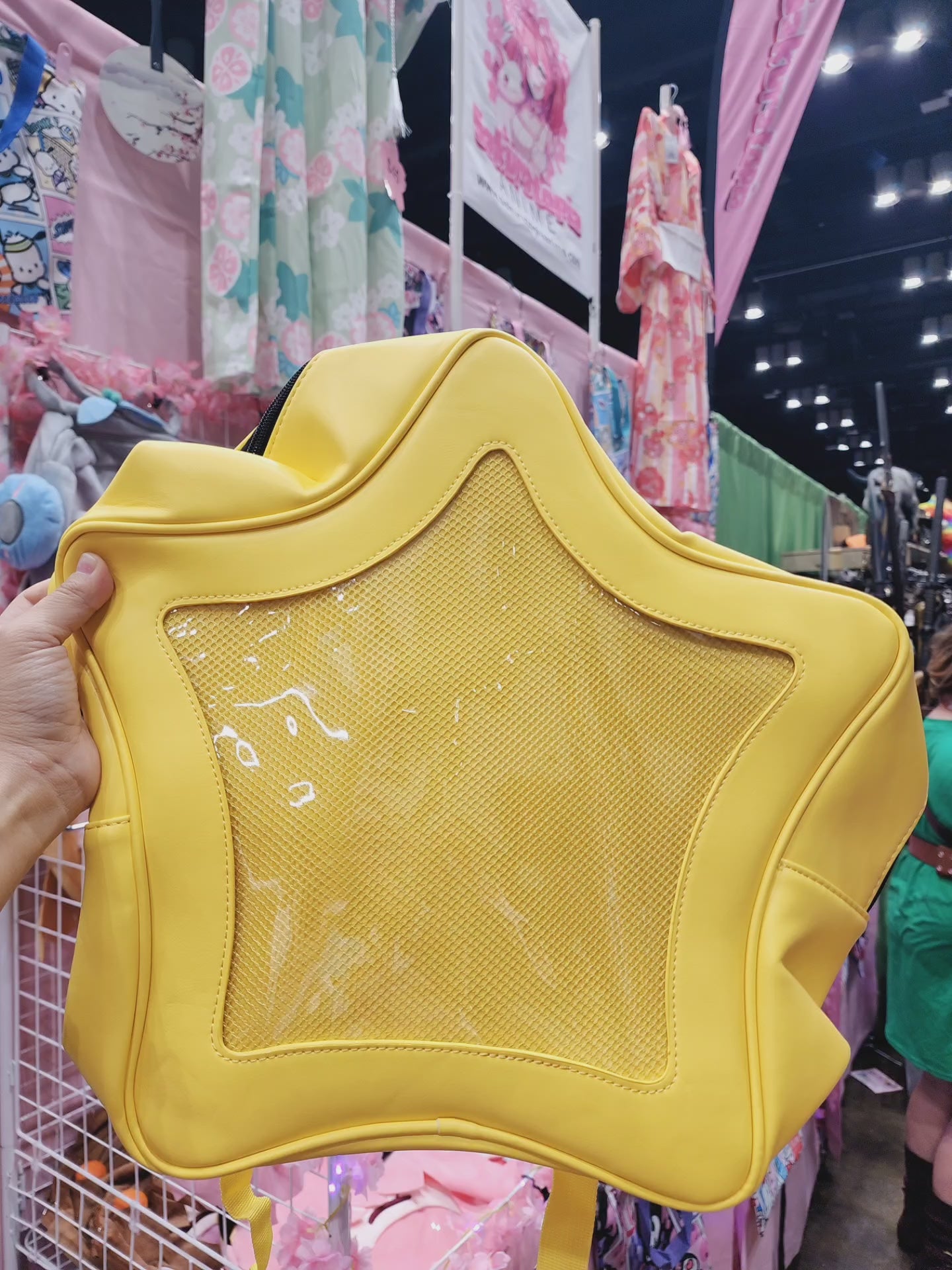 Large Yellow Star ITA backpack, kawaii star bag, ita backpack, enamel pin ita bag, PU leather ita bag, cosplay bag, anime convention ita bag