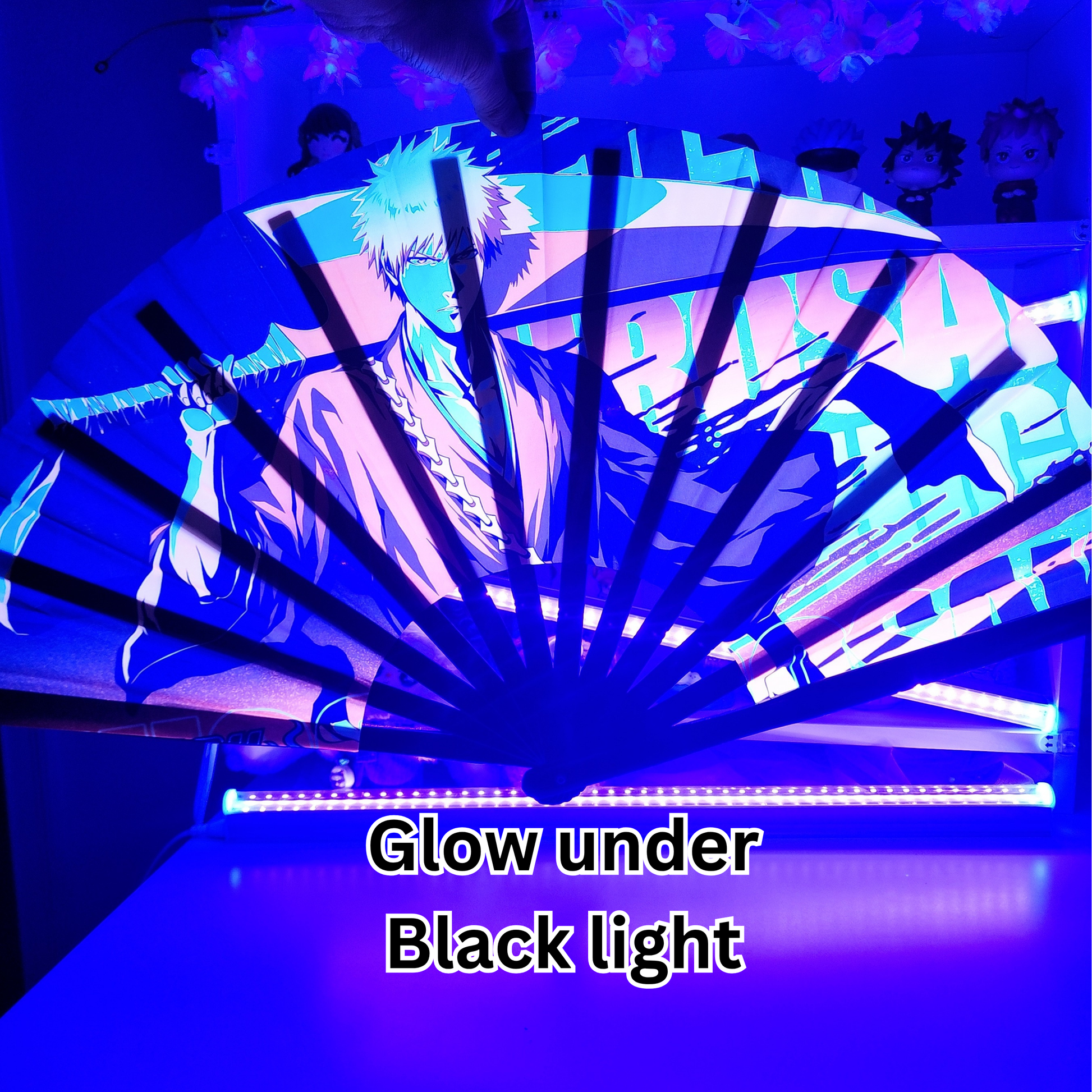 Bleach Anime Clack Fan | Glow Under Black Light | Folding Hand Fan for Rave, Party & Convention