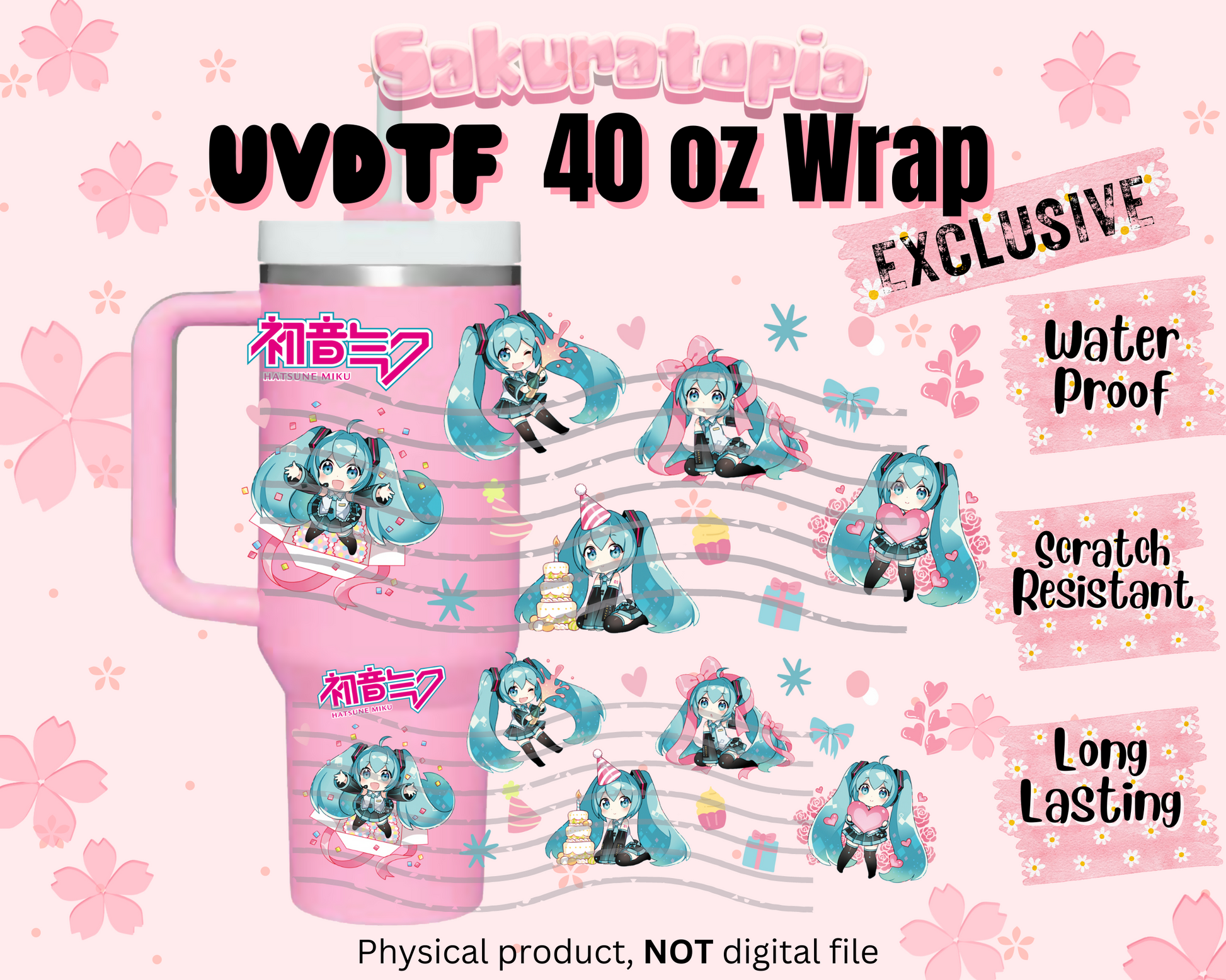UVDTF 40oz Tumbler Hatsune Miku Anime Wrap, Ready to Use Tumbler UVDTF transfers for tumbler | Ready to Apply UVDTF wraps for 40oz tumbler
