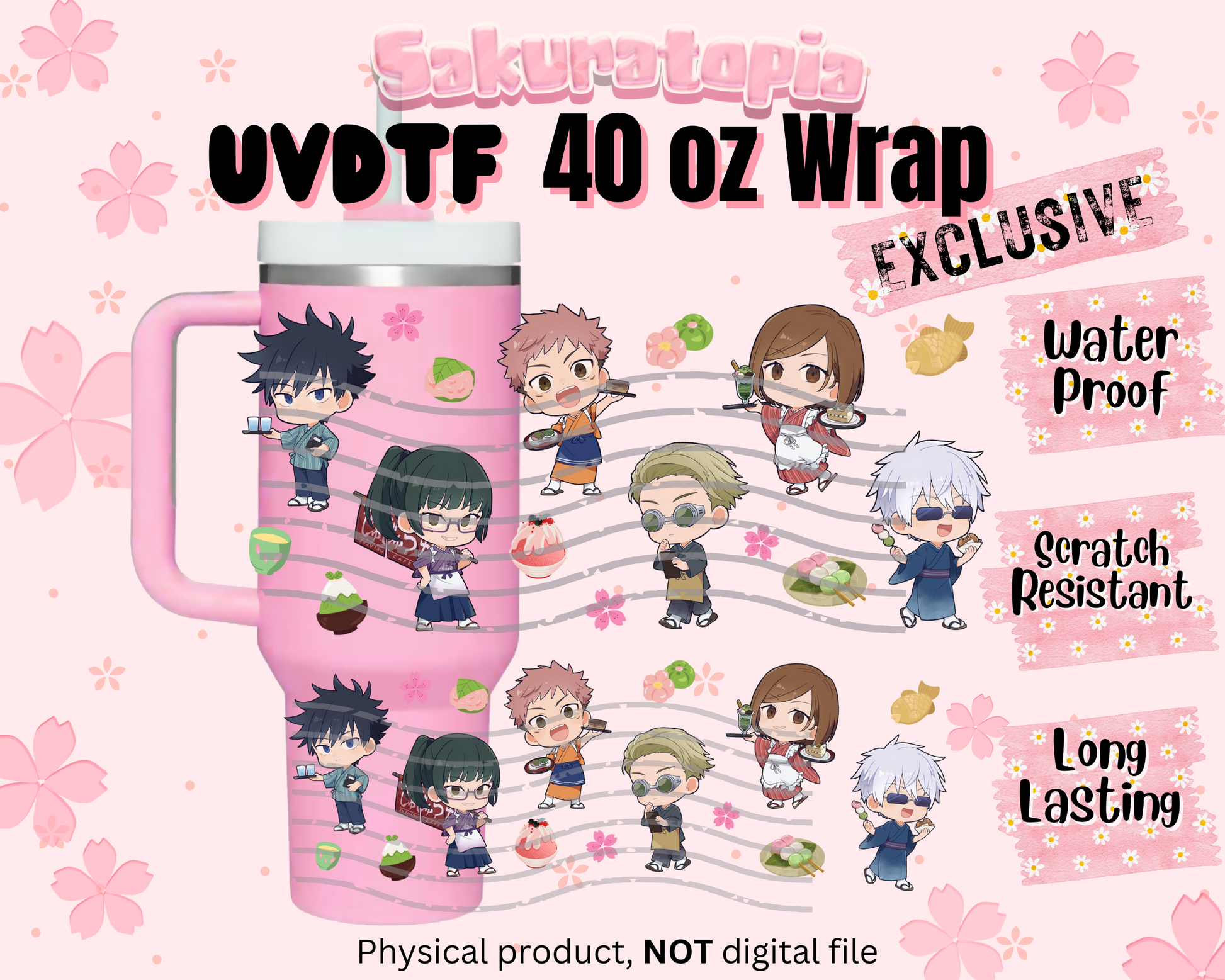 UVDTF 40oz Tumbler jujutsu kaisen Anime Wrap, Ready to Use Tumbler UVDTF transfers for tumbler | Ready to Apply UVDTF wraps for 40oz tumbler