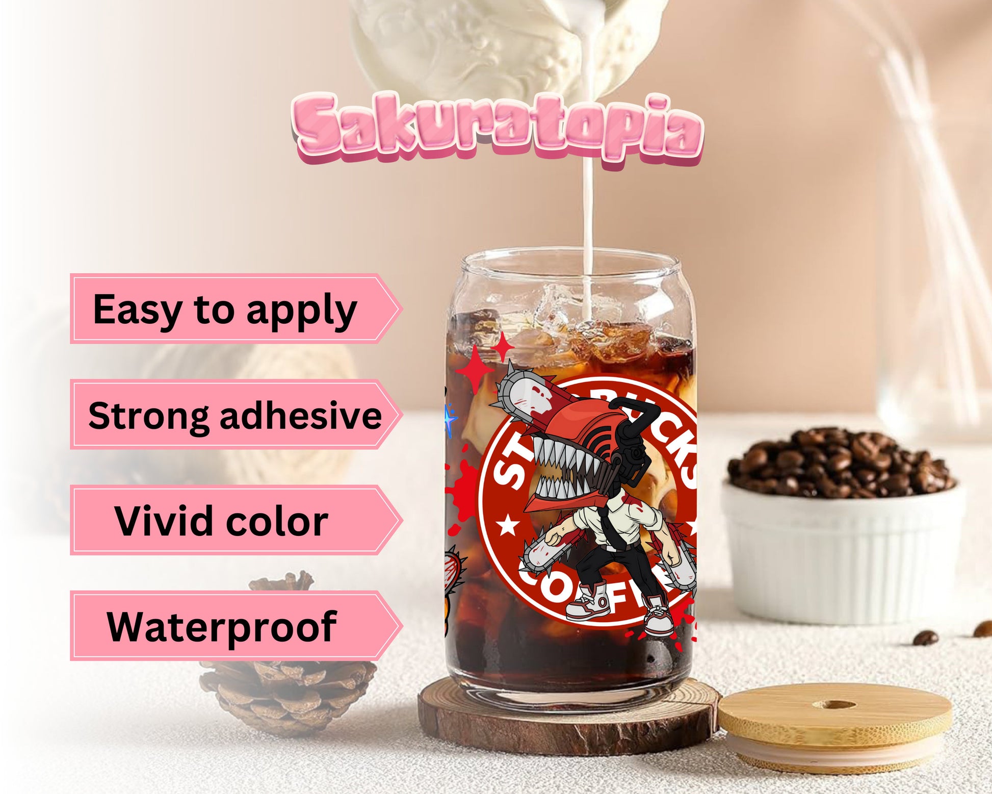 UVDTF Anime Cup Wrap, Ready to Use Glass Cup UVDTF transfers for Glass Can | Ready to Apply UVDTF wraps for Libbey Glass
