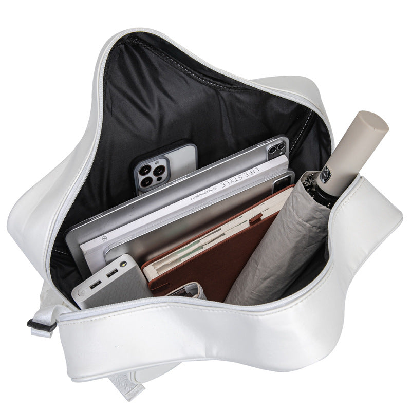 **Material:** This backpack is crafted from PU fabric with a durable polyester lining. It is lightweight, water-resistant, and easy to clean.